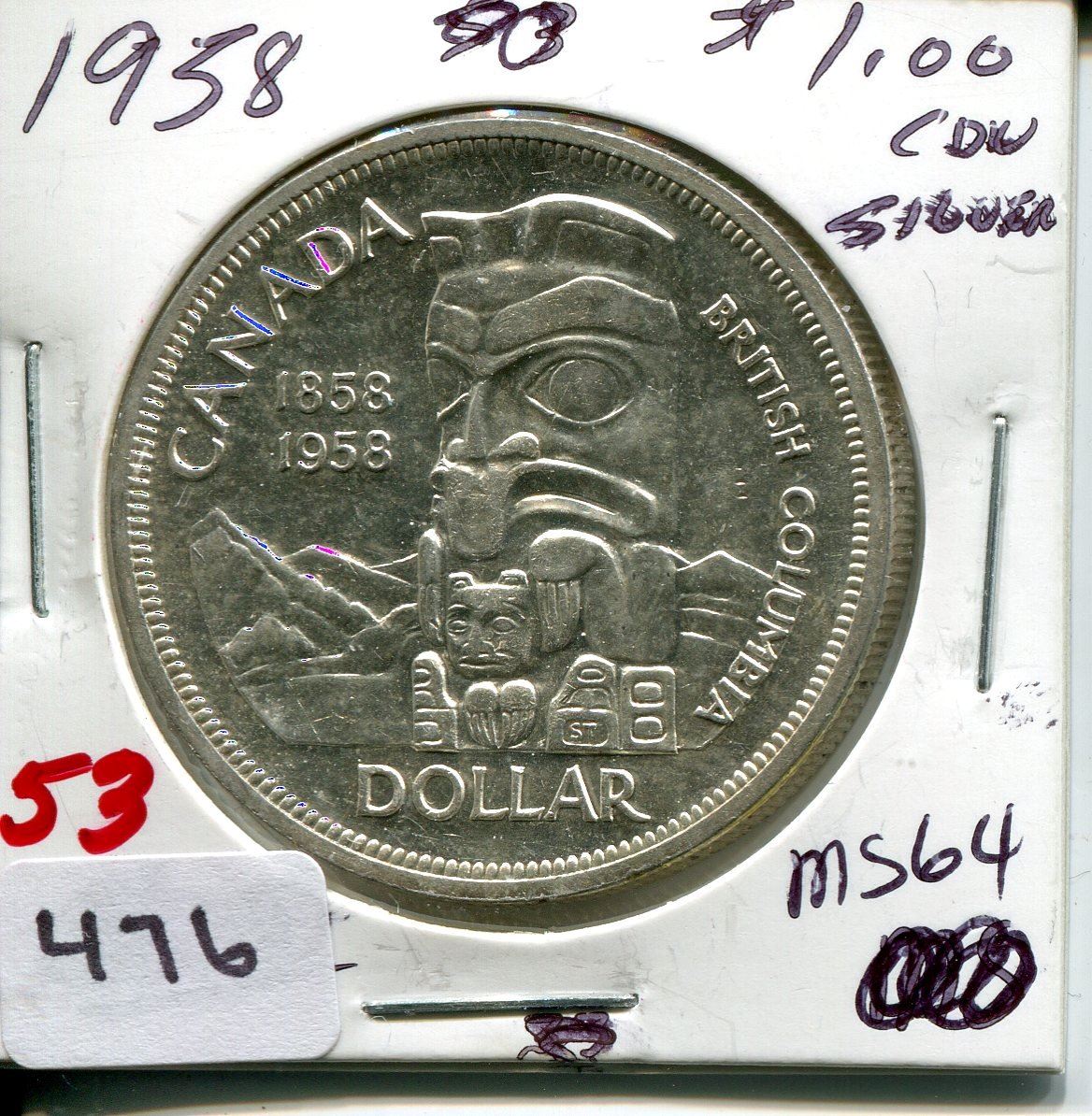 1958 CNDN SILVER DOLLAR (BRITISH COLUMBIA)