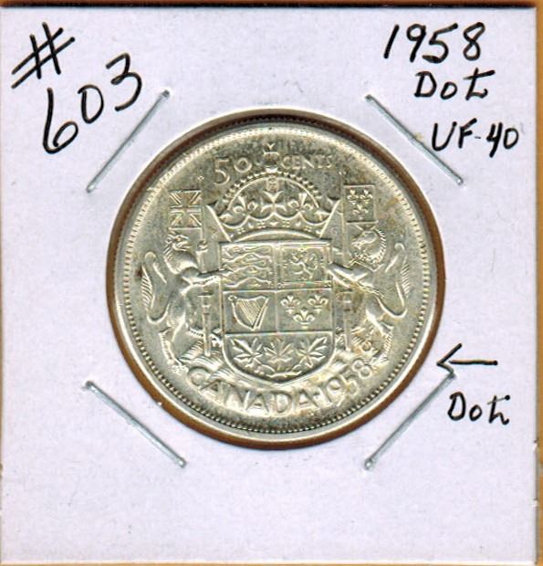 1958 Dot CANADIAN SILVER 50 CENT COIN