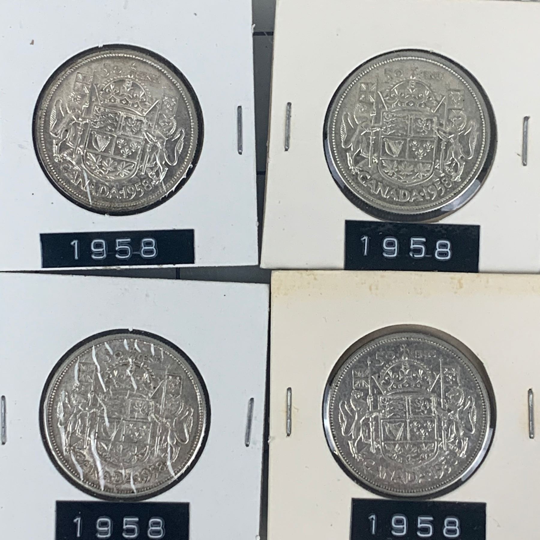 1958 LOT OF 4 CANADA SILVER 50 CENT PIECES