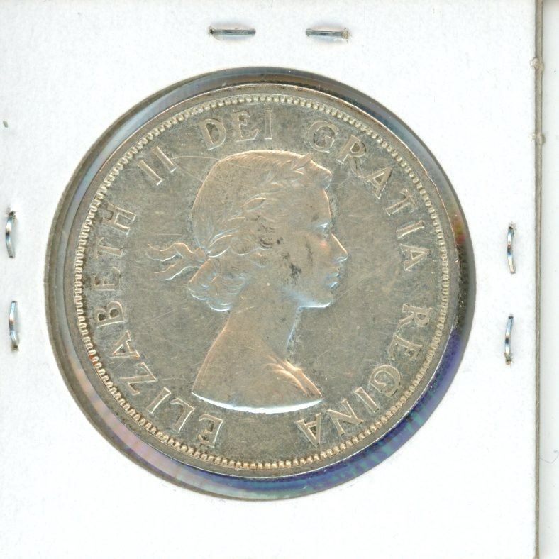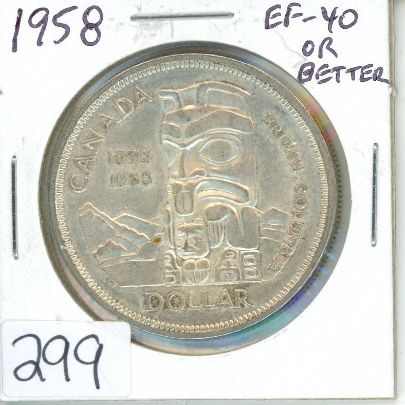1958 Silver Dollar. Totem Pole celebrates British Columbia joining Canada. EF-40 or better. Nice.