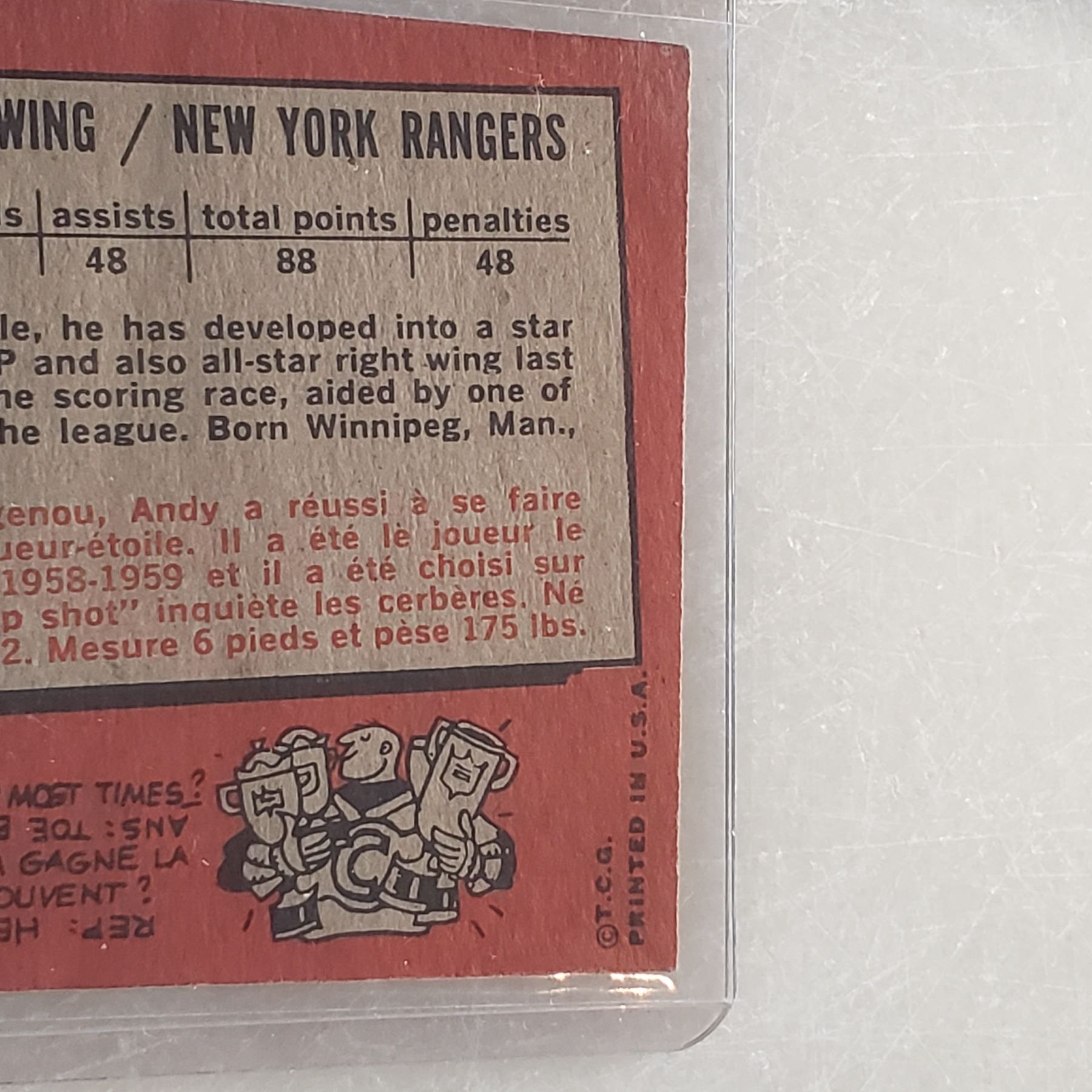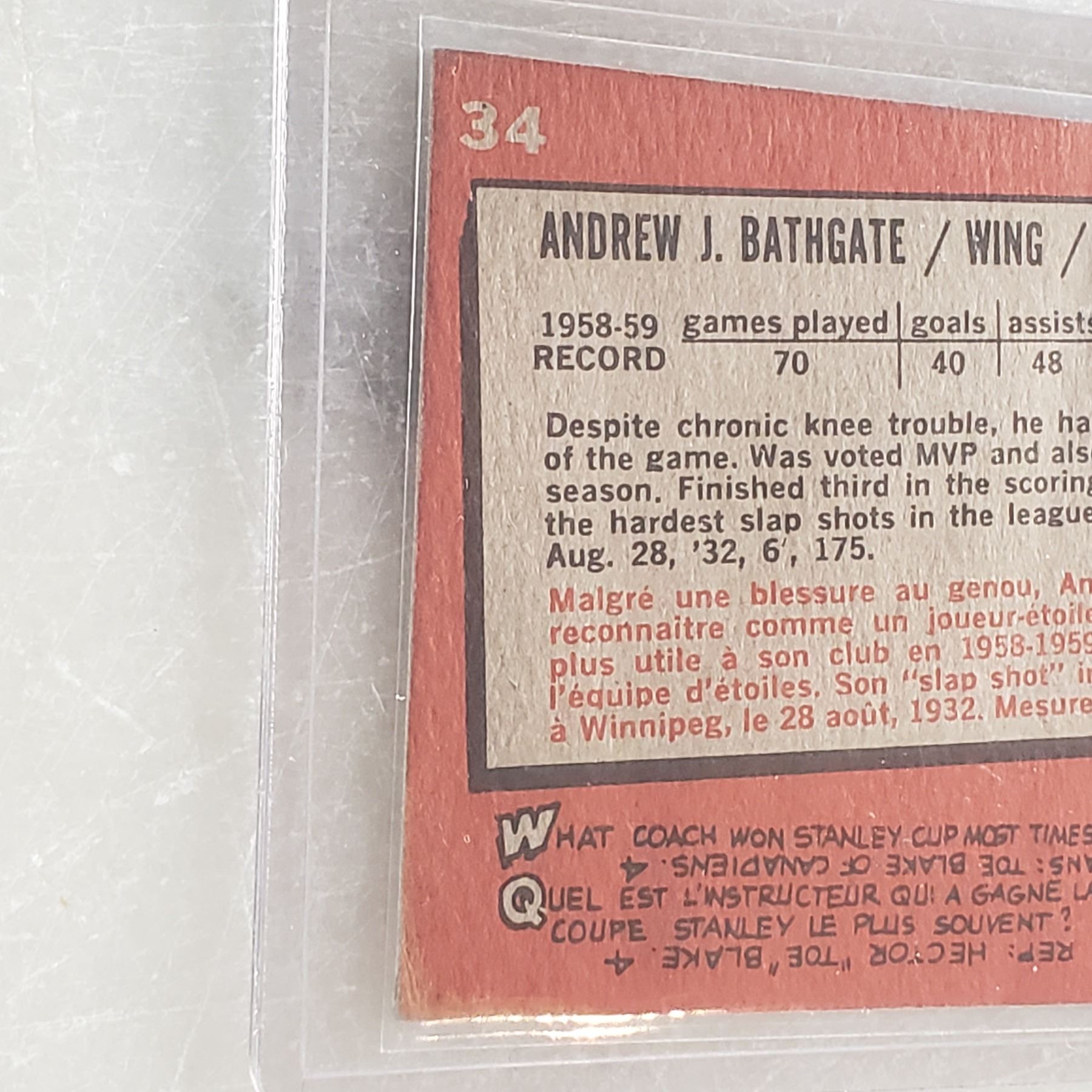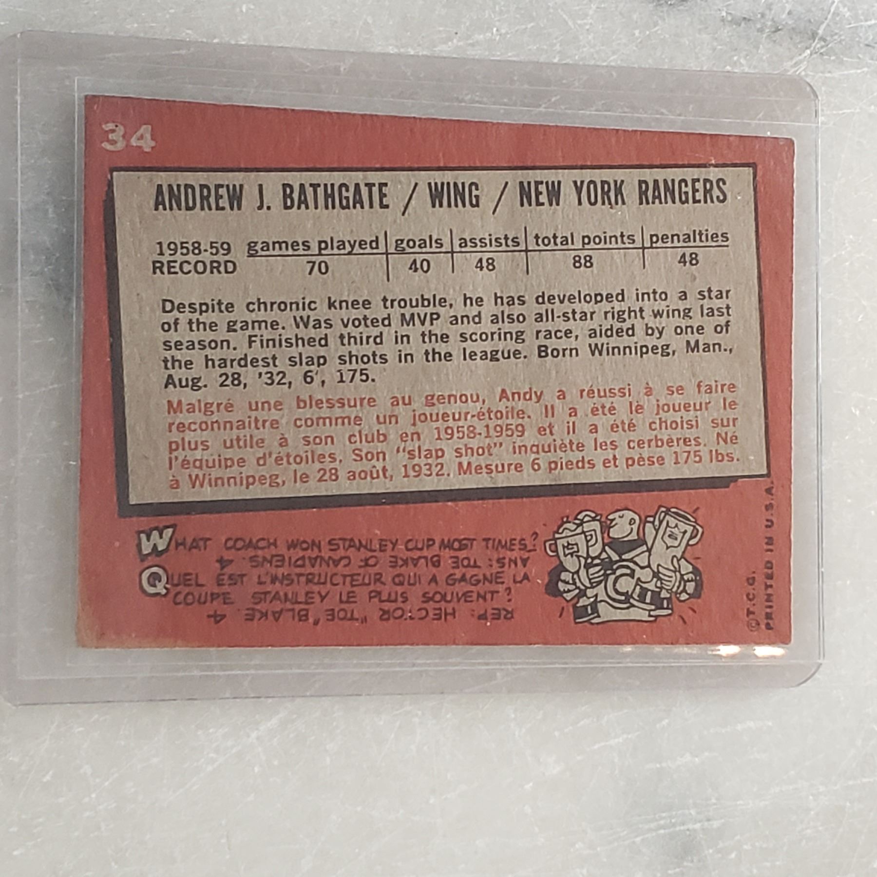 1959-60 Topps Andy Bathgate Hall of Fame (born Winnipeg) New York Rangers hockey cards #34 Vintage