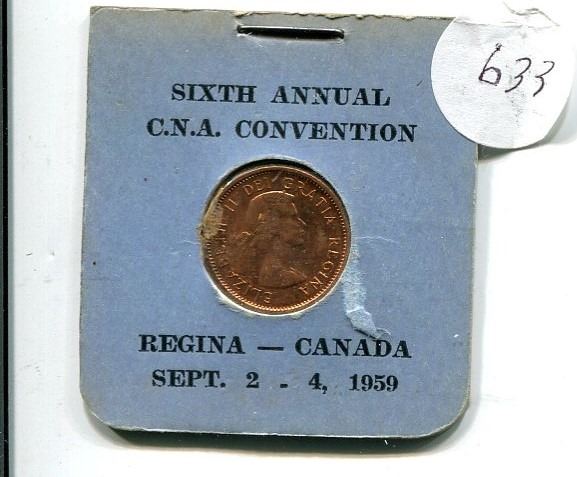 1959 CDN 1 CENT UNC IN POUCH - 6TH ANNUAL CAN CONVENTION, REGINA SEPT. 2-4/1958