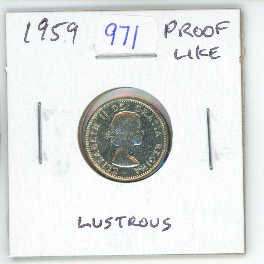 1959 Canadian Silver 10 Cents. From a Proof Like Set. PL-65. Lustrous.