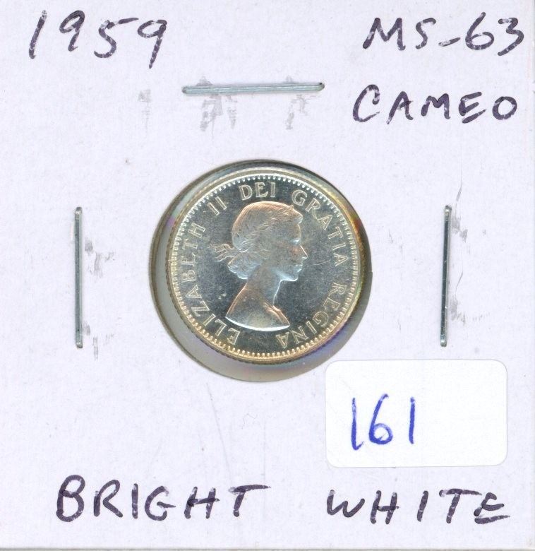 1959 Canadian Silver 10 Cents. MS-63 with Cameo. Bright White.
