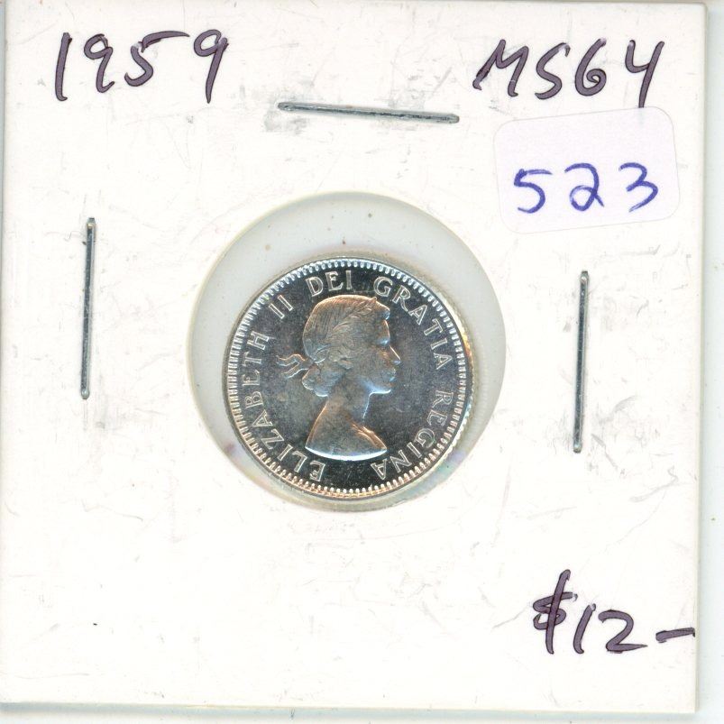 1959 Canadian Silver 10 Cents. MS-64. Bright White.