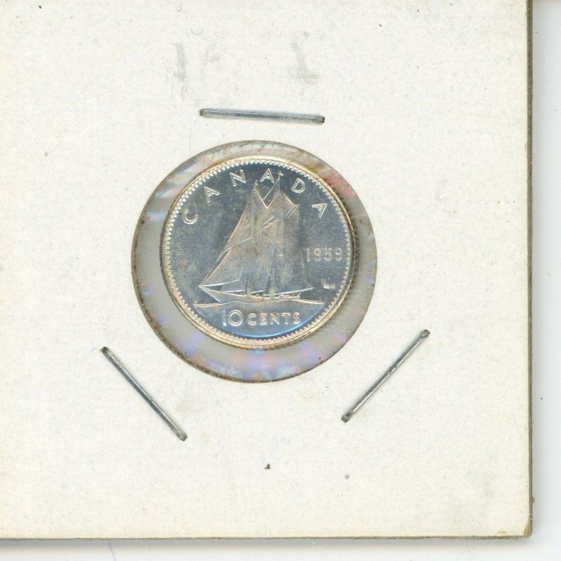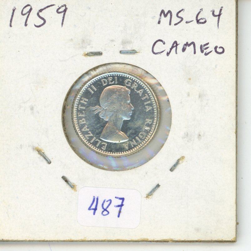 1959 Canadian Silver 10 Cents. MS-64 with Cameo. Bright White.