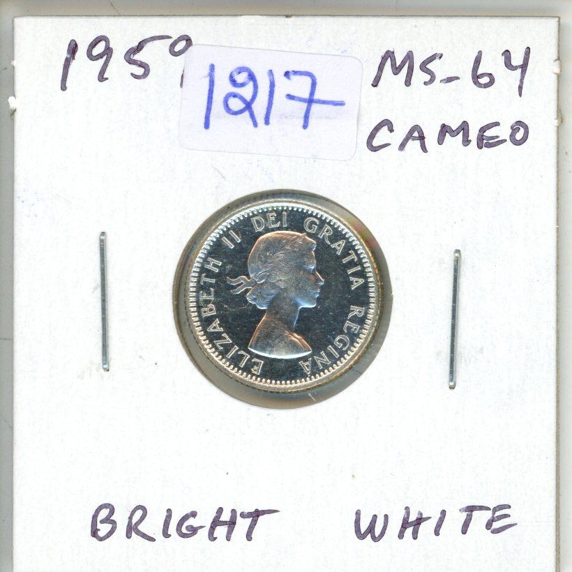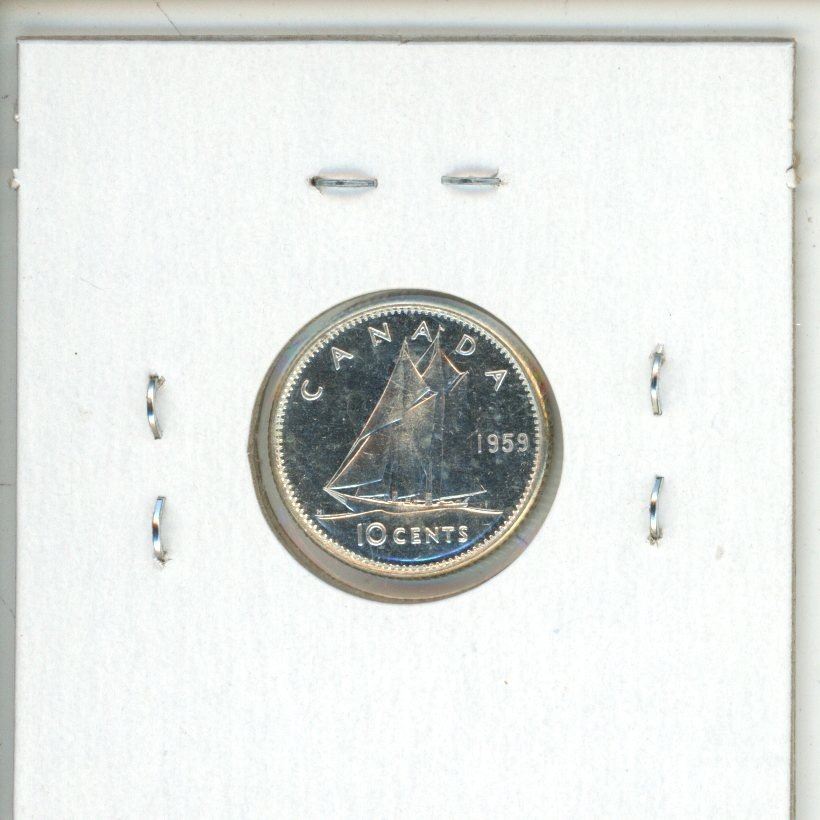 1959 Canadian Silver 10 Cents. MS-64 with Cameo. Bright White.