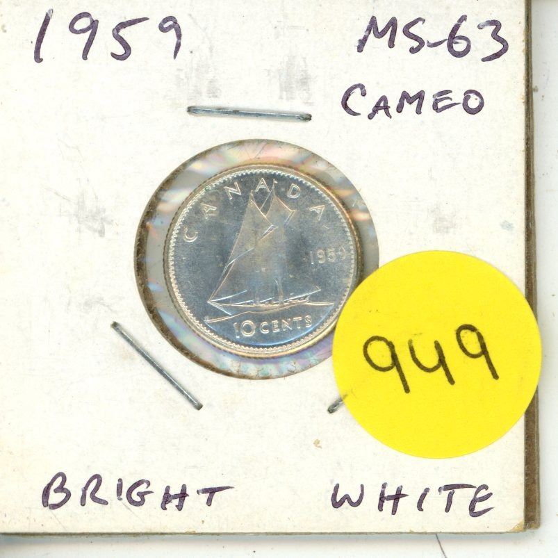 1959 Silver 10 Cents. MS-63 with Cameo. Bright White.