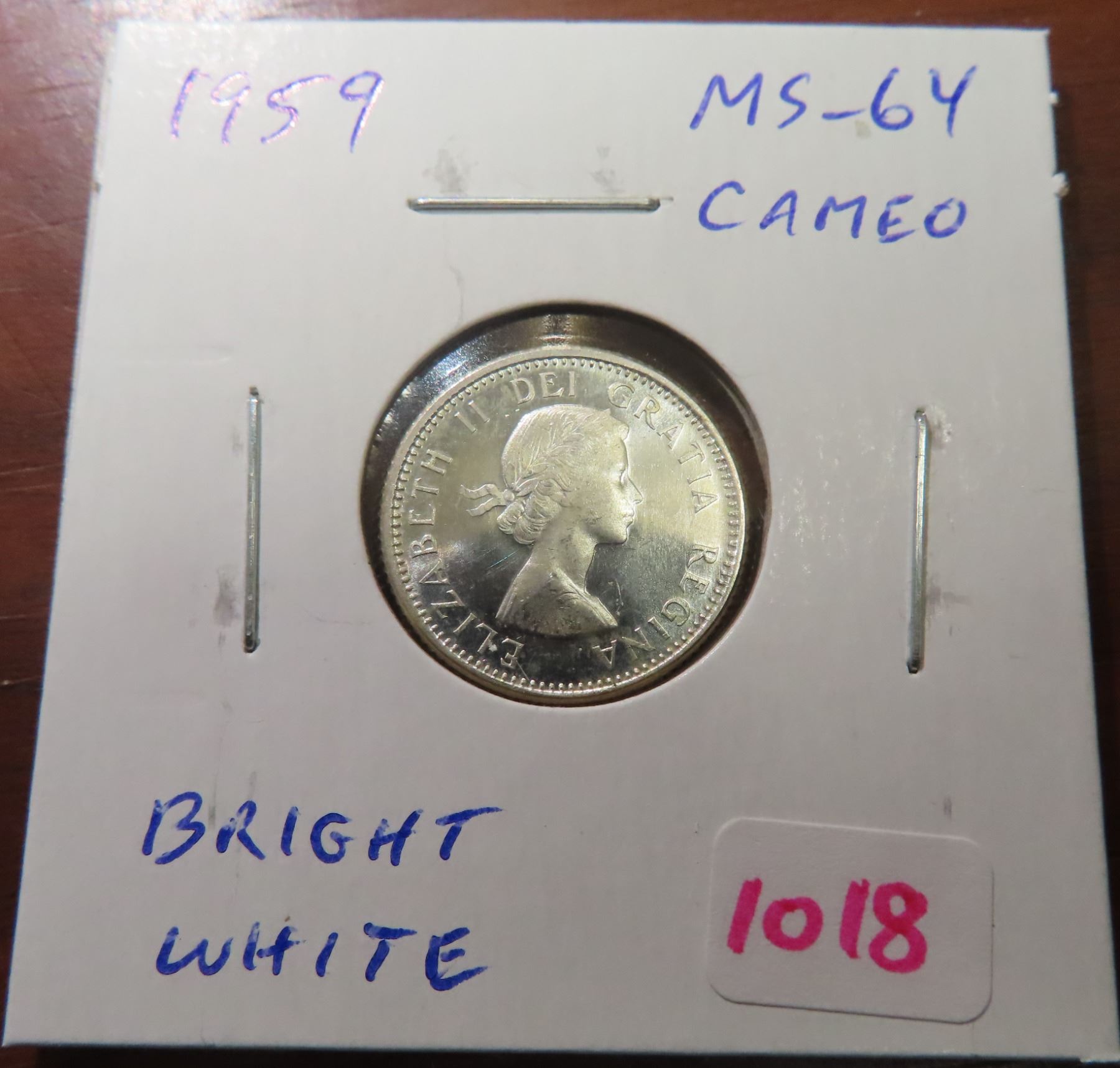 1959 Silver 10 Cents. MS-64 with Cameo. Bright White.