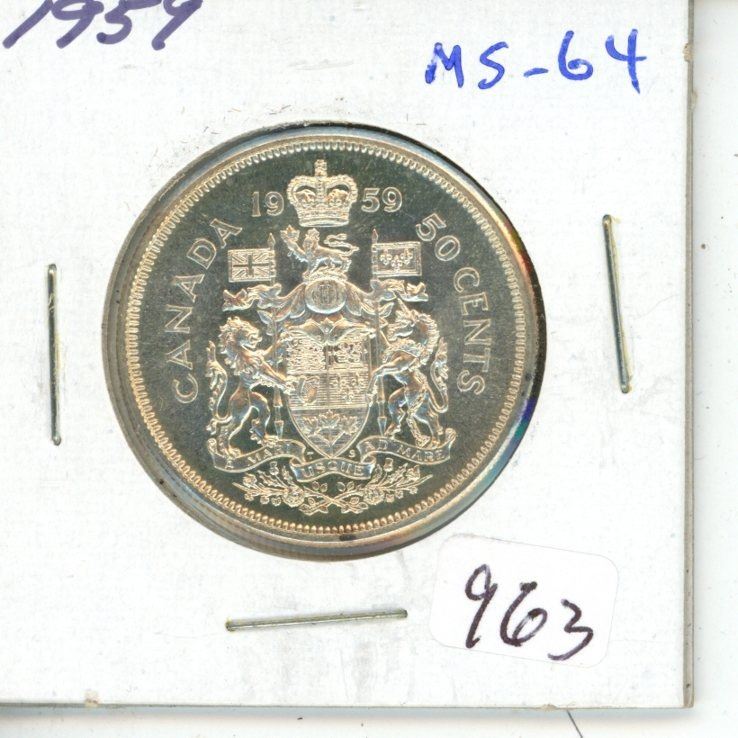1959 Silver 50 Cents. MS-64. Fully Lustrous.