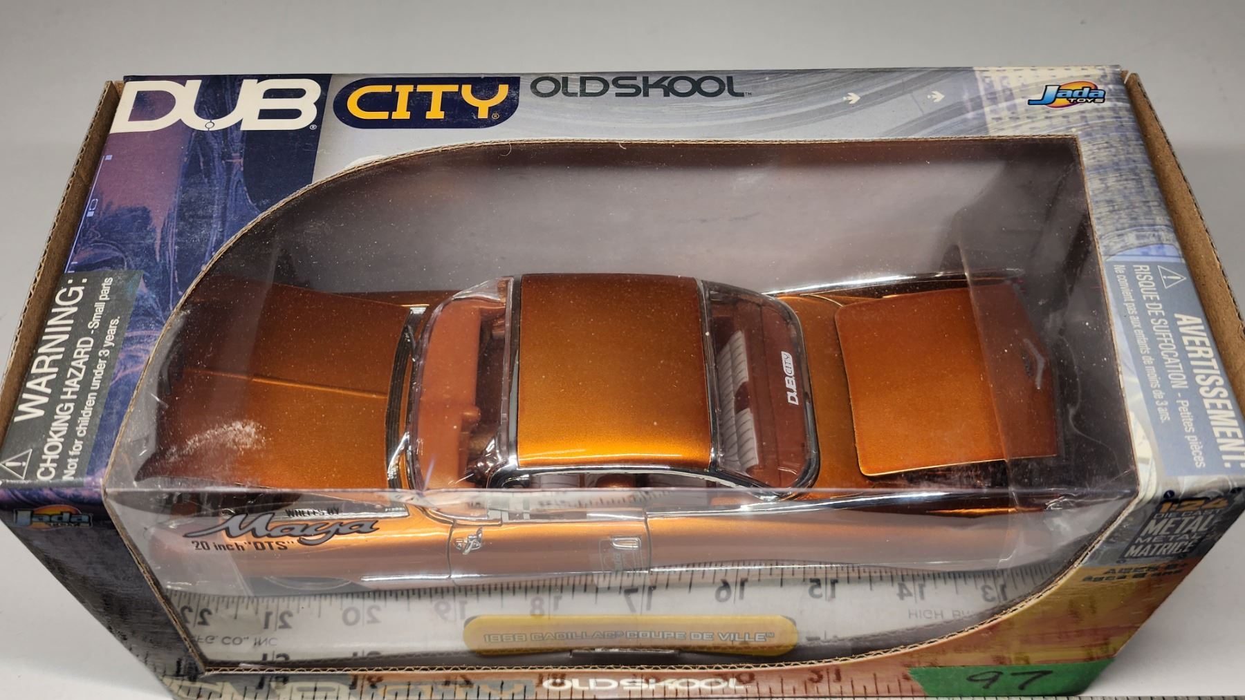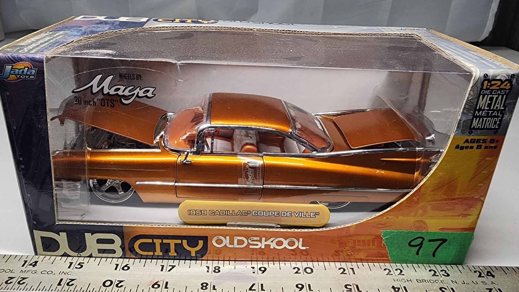 1959 (orange) Cadillac Coupe De Ville Die cast model car 1:24 scale