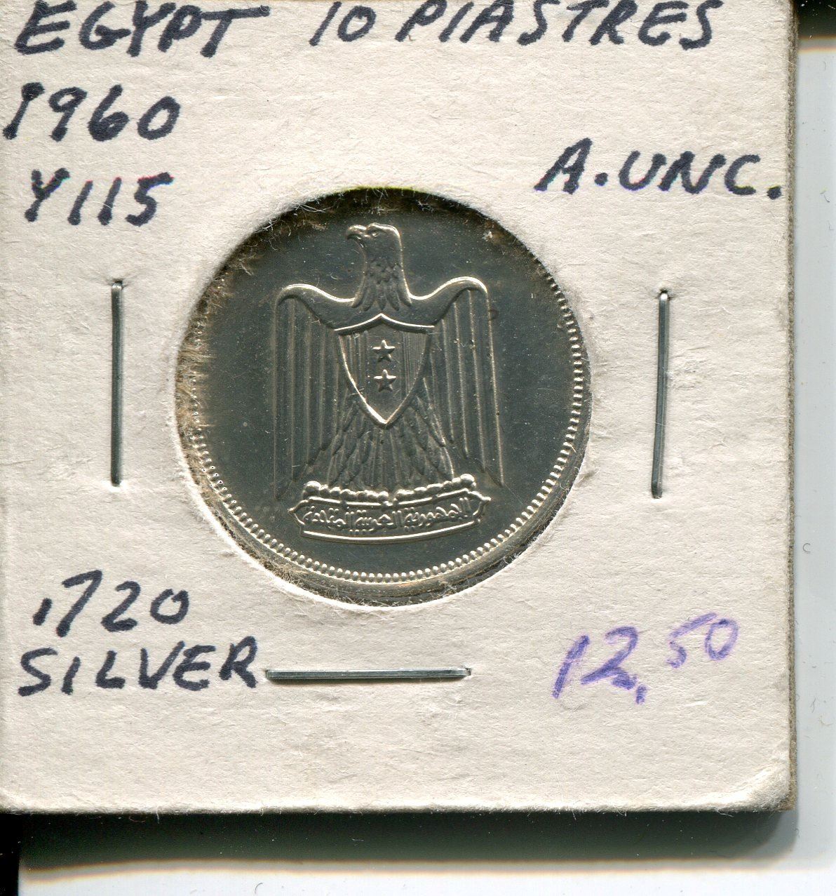 1960 10 PIASTRES (EGYPTIAN) *AU .720 SILVER*