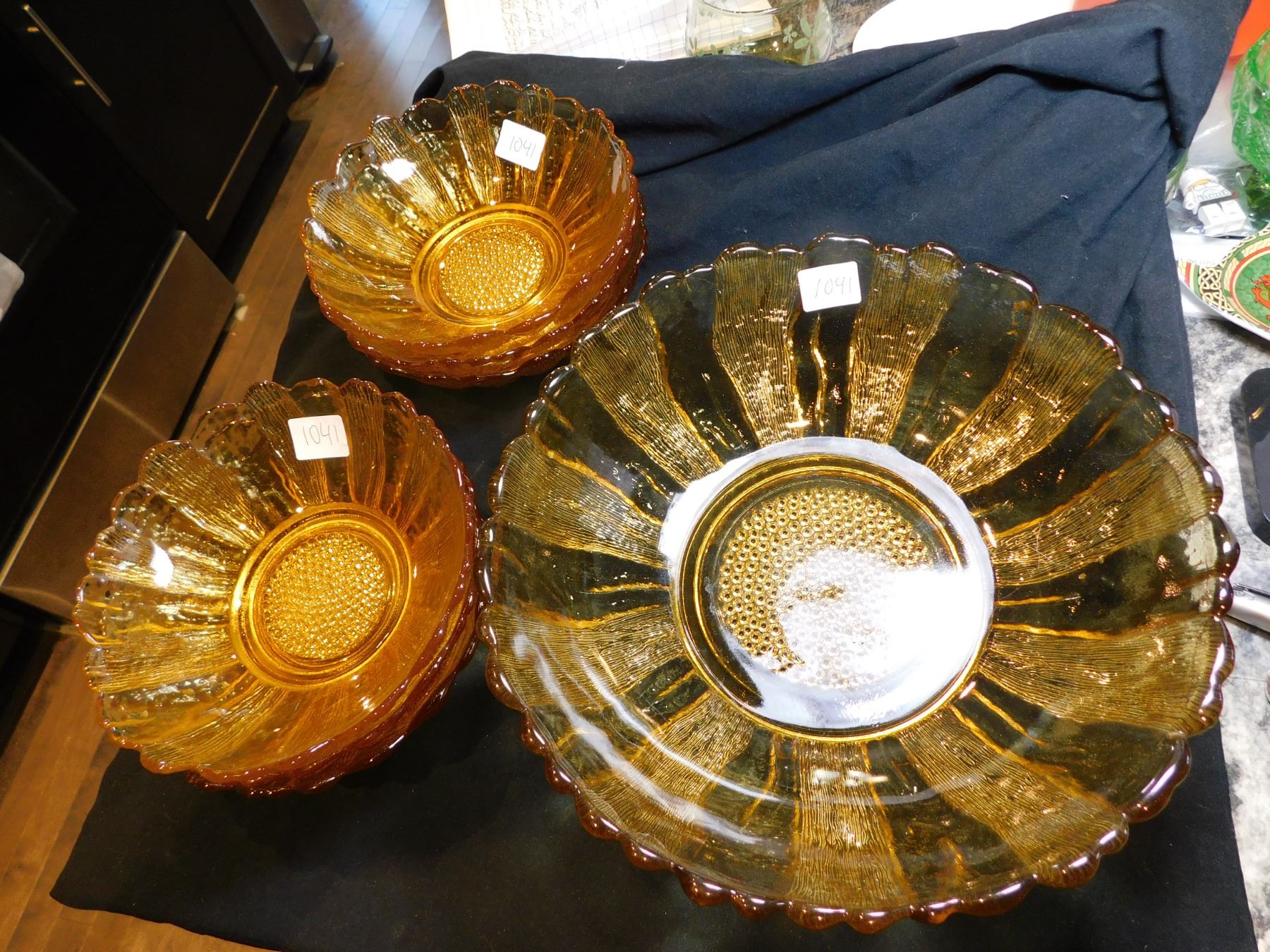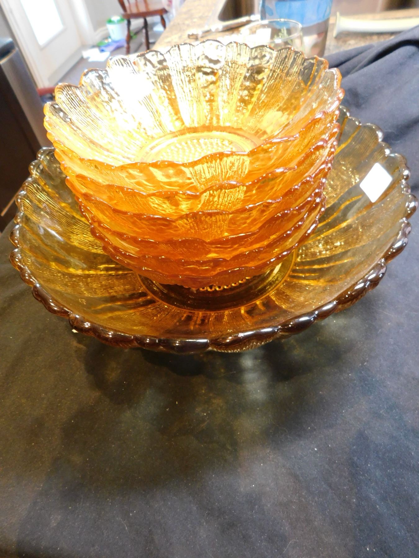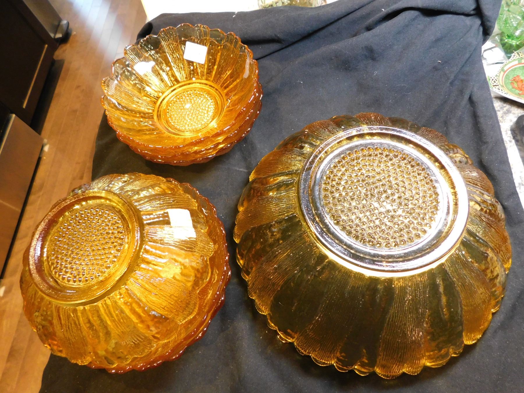 1960 ANCHOR HOCKING HARVEST GOLD COUNTRY ESTATE, SALAD BOWL & SIX BOWLS