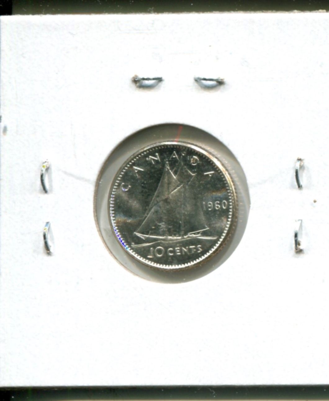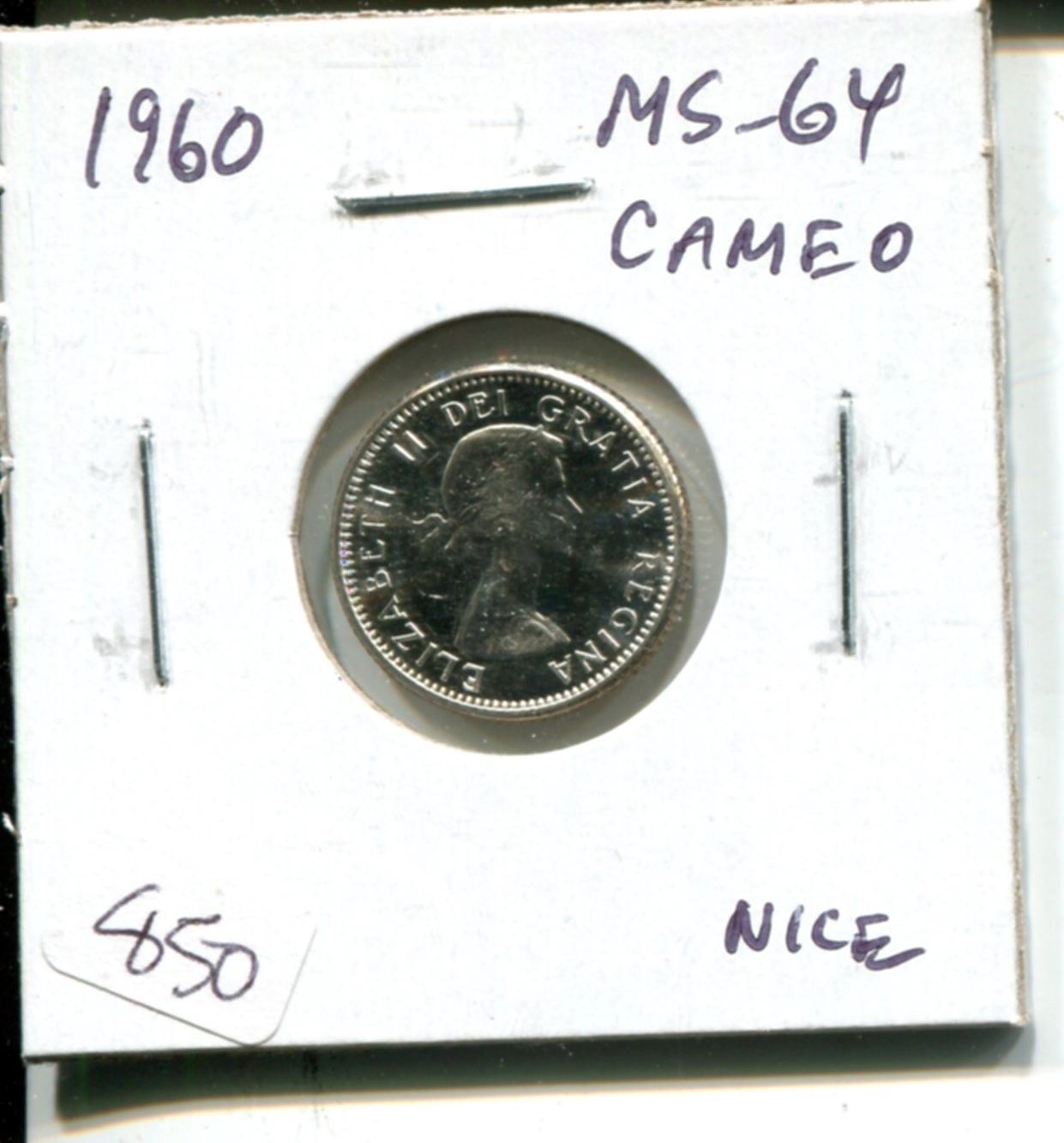 1960 Canadian Silver 10 Cents. MS-64 with Cameo. Bright White. Nice.
