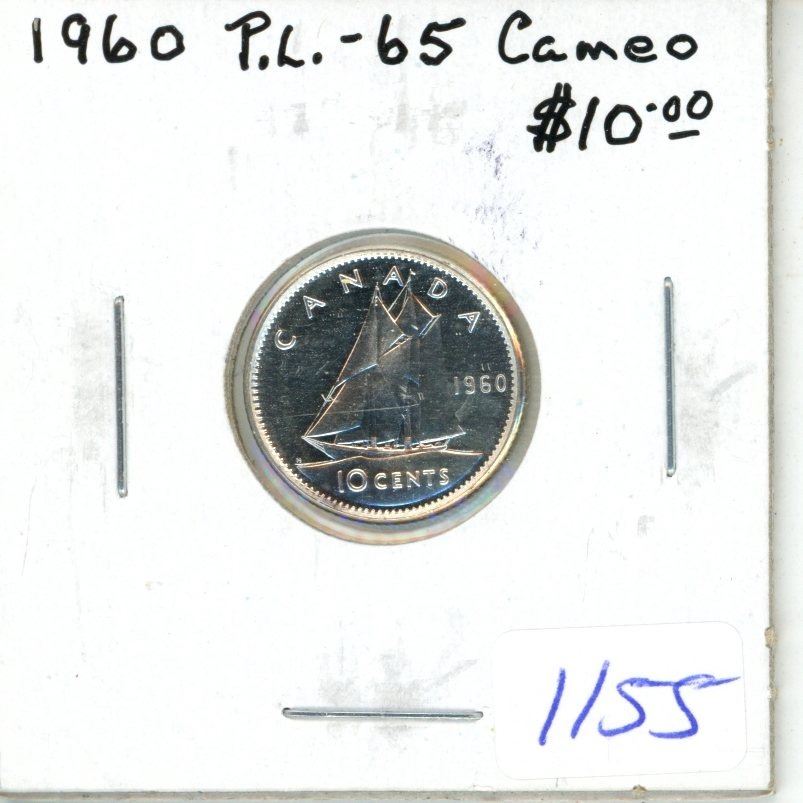 1960 Canadian Silver 10 Cents. Proof Like-65 with Cameo. Bright White. Nice.