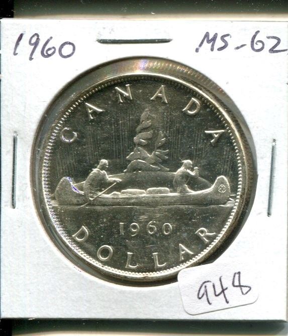 1960 Canadian Silver Dollar. MS-62. Nice.
