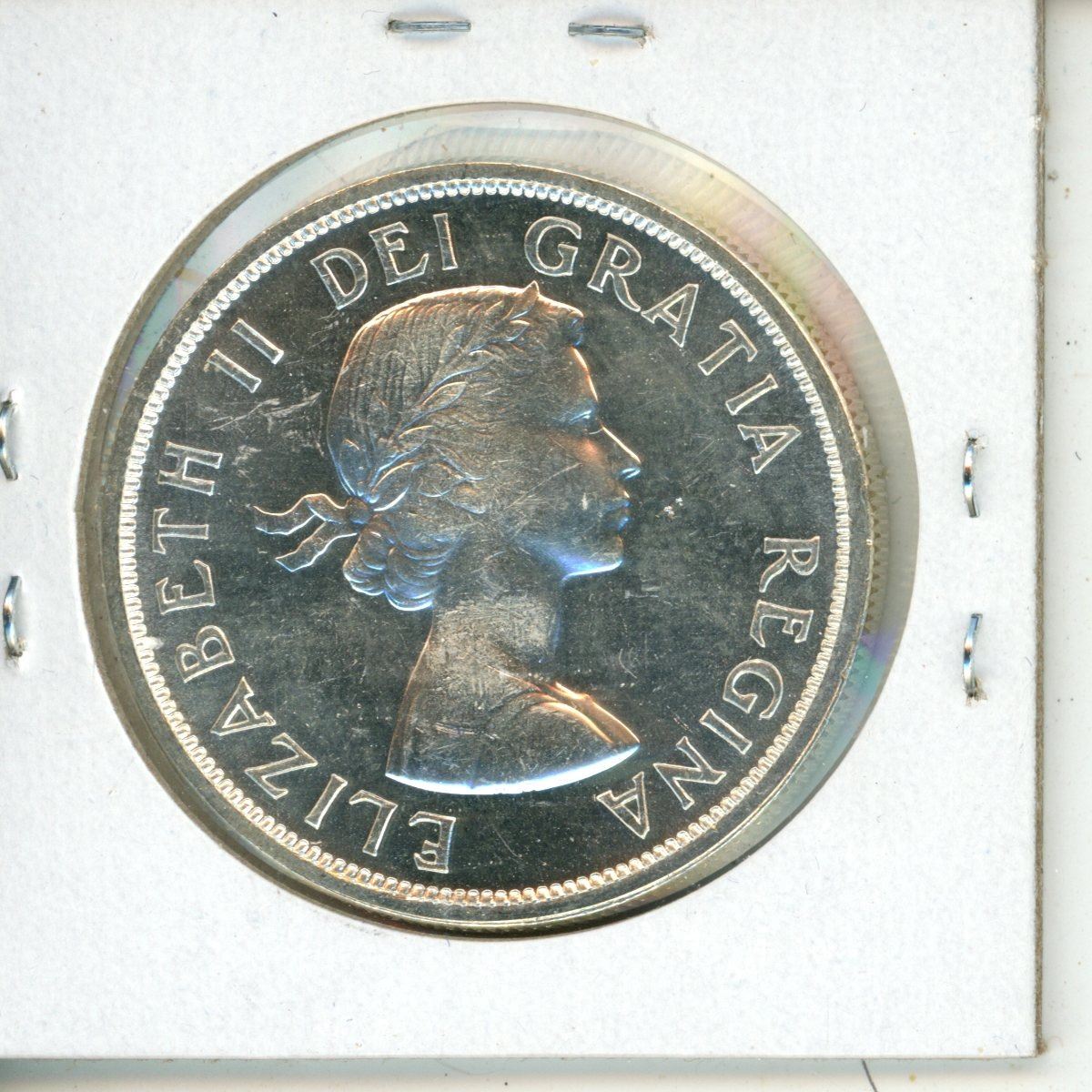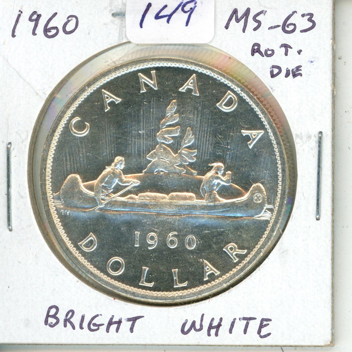 1960 Canadian Silver Dollar. MS-63. Rotated Die. Bright White.