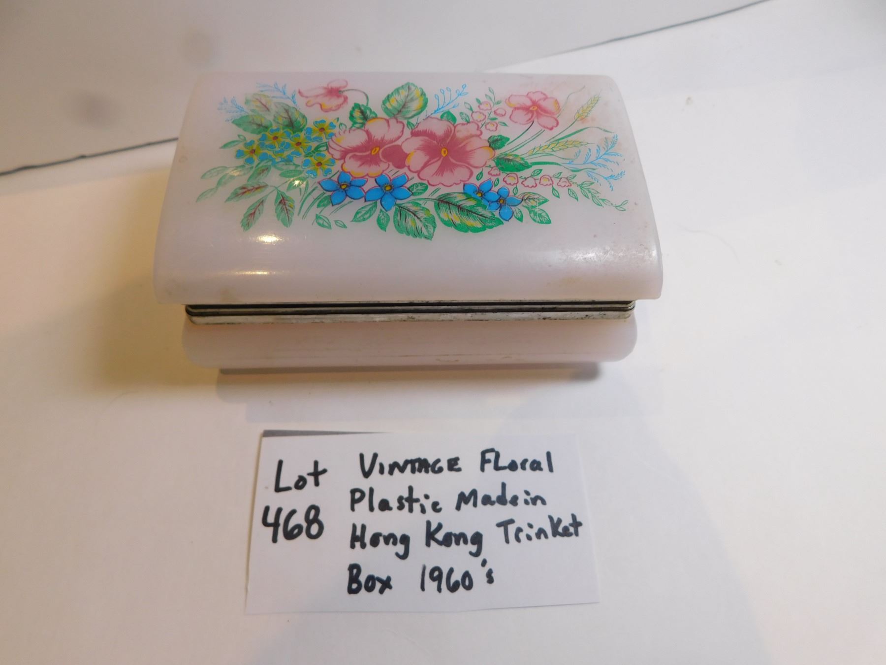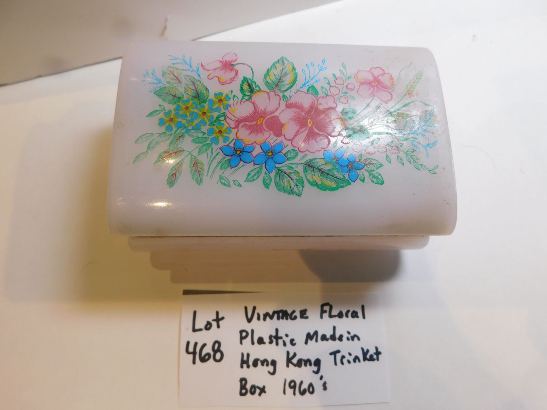 1960’S FLORAL PLASTIC MADE IN HONG KONG TRINKET BOX