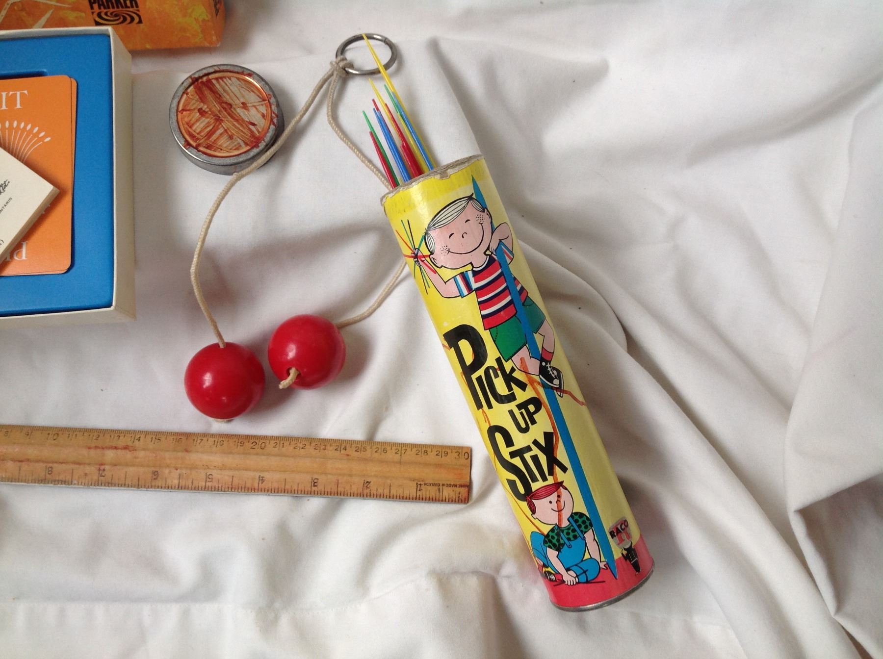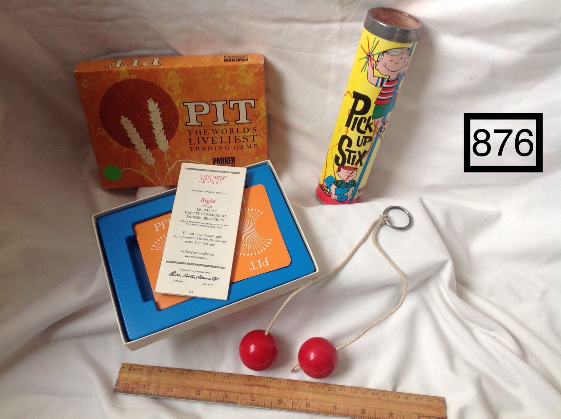 1960'S GAMES.PICK UP STIX/ CLACKER BALLS/ PIT GAME