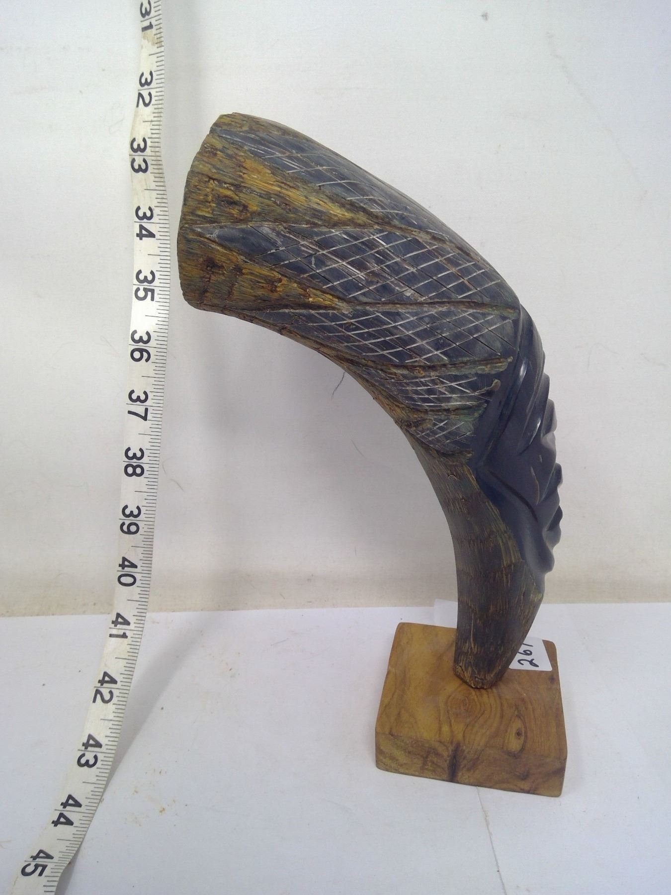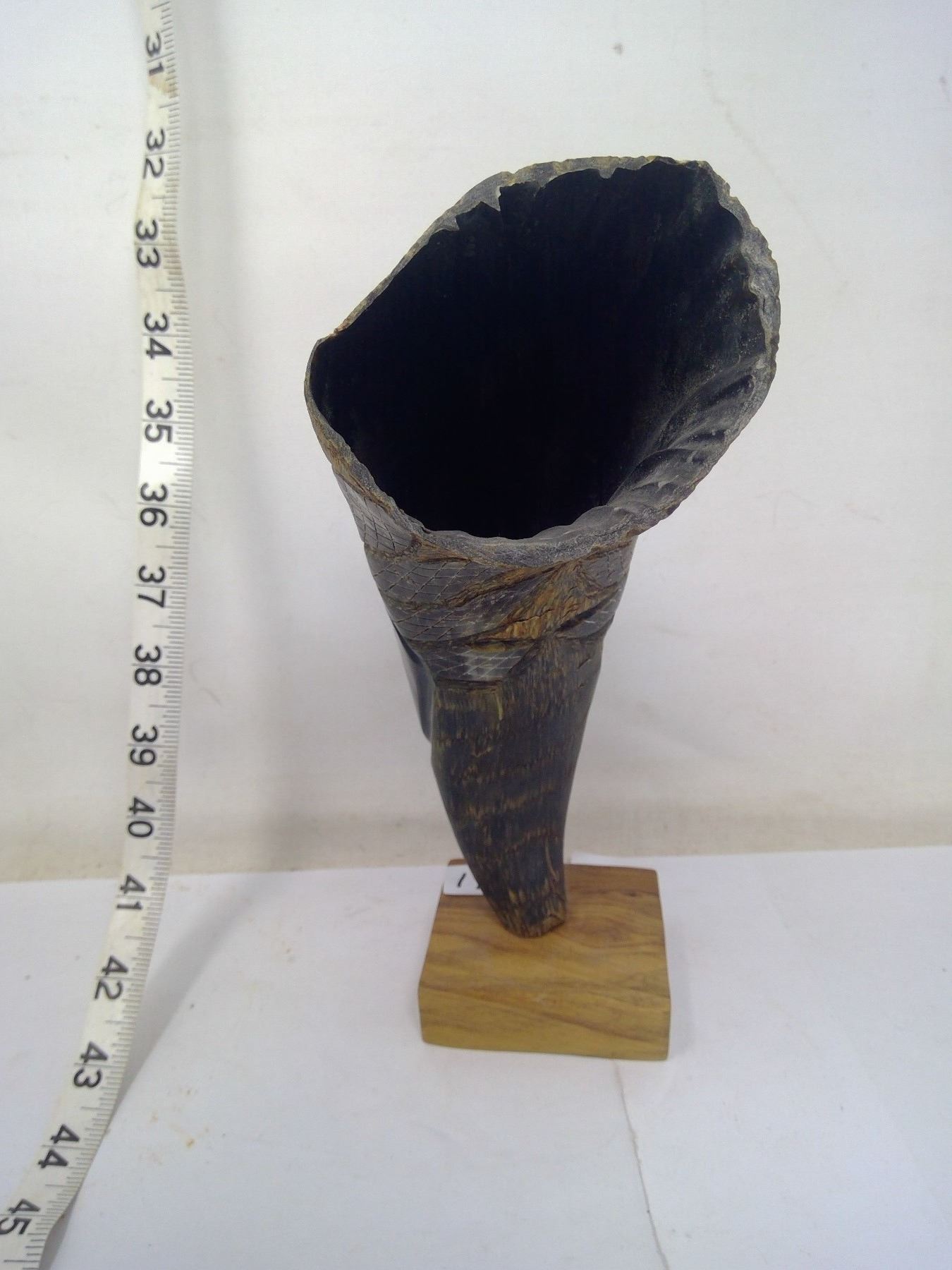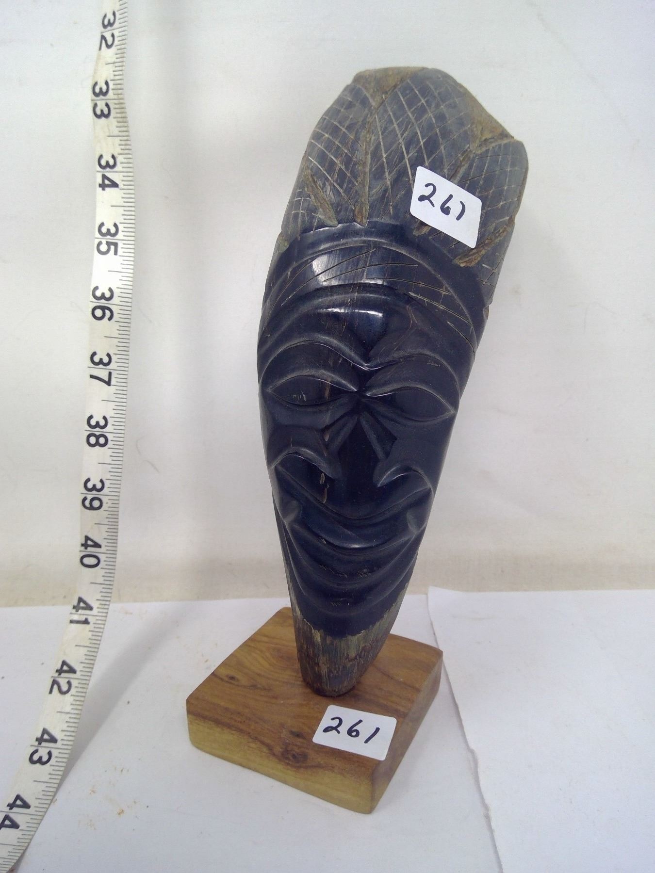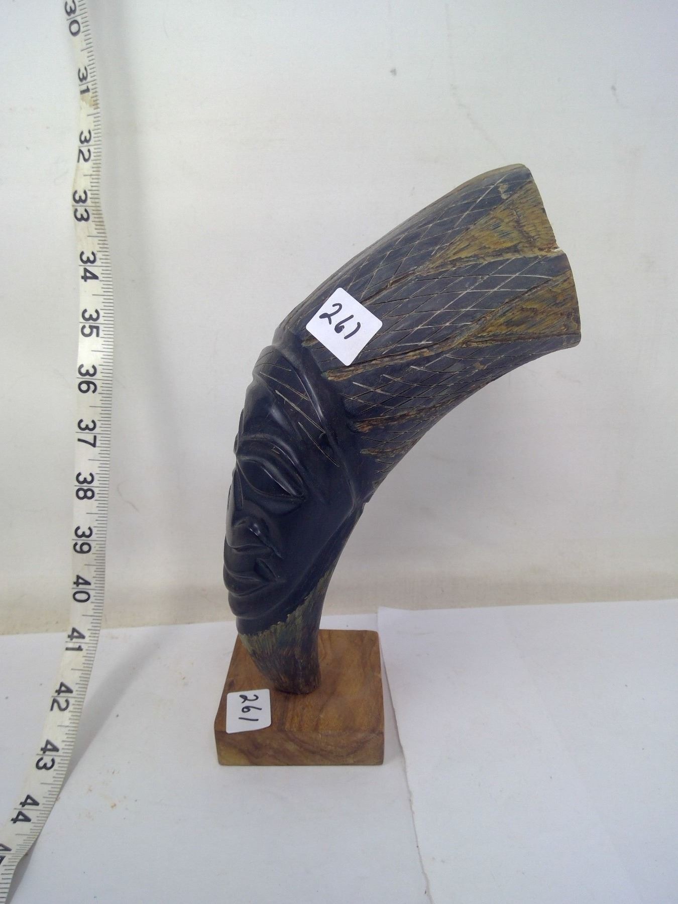 1960, Venezuela, carved horn polished grinning face. Height 11”.