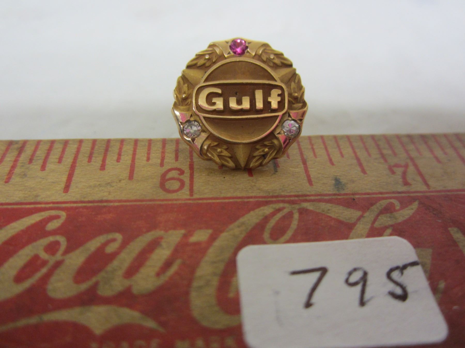 1960's Gulf Oil Service Award Pin 10 kt. Gold with Ruby and 2 Diamonds