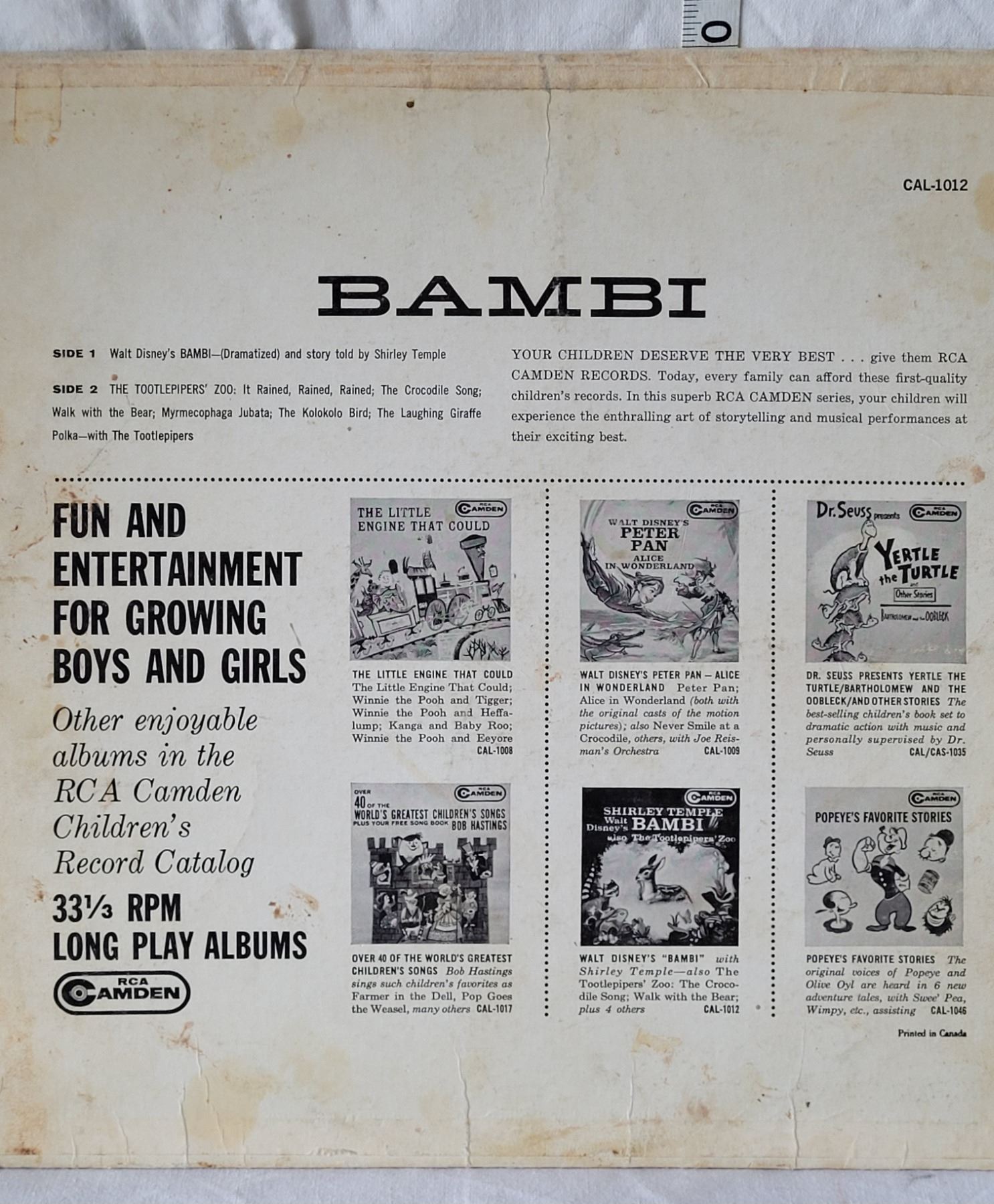 1960's Walt Disney “Bambi” LP narrated by Shirley Temple