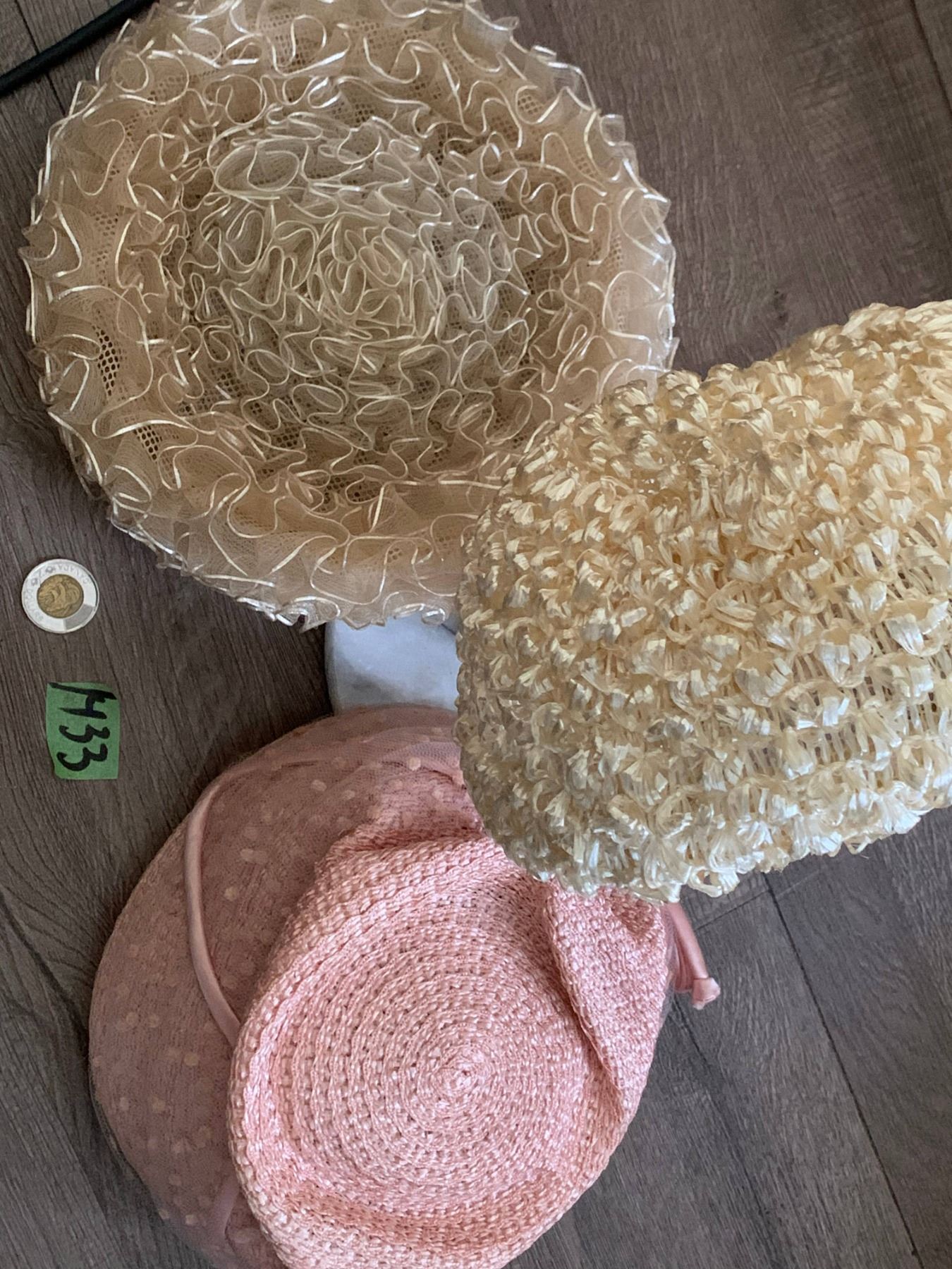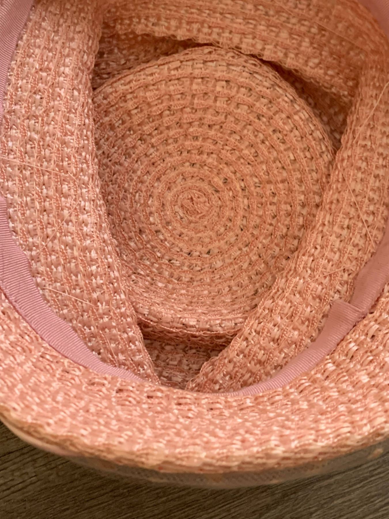 1960's hats - fancy pink rayon poly, fancy pillbox - very lightweight and cute