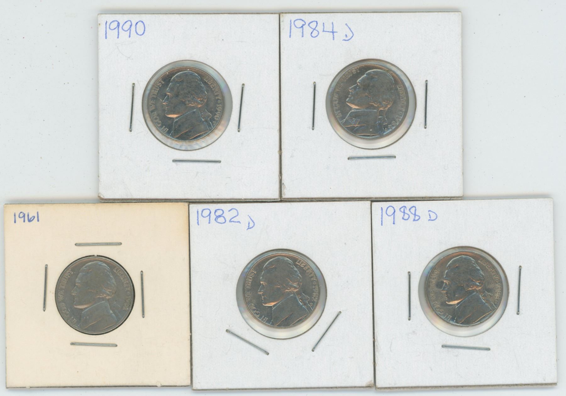 1961 &82 & 84 & 88 & 90 United States 5 Cent Coins