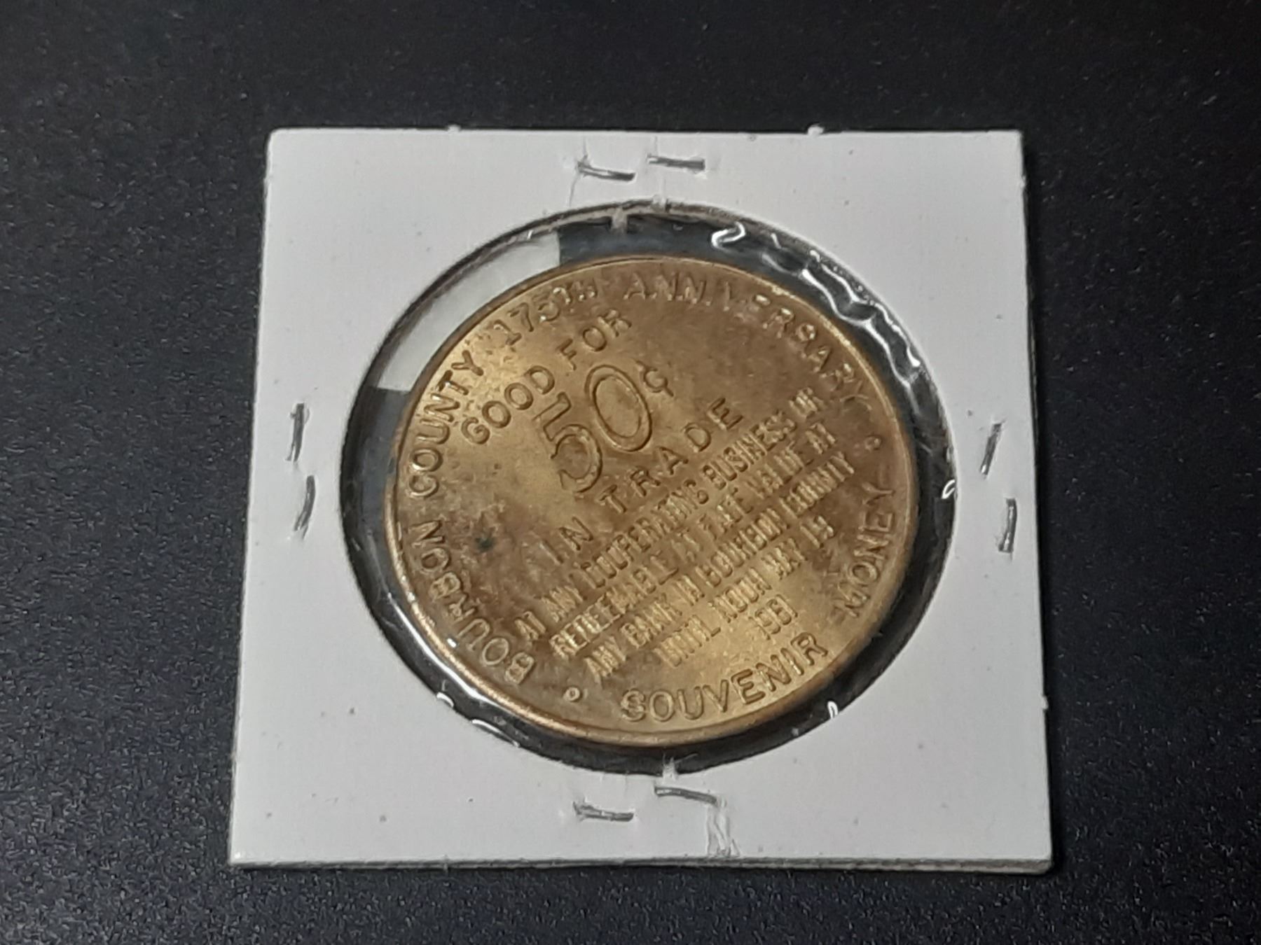 1961 Bourbon County, Kentucky Half Dollar Brass Token