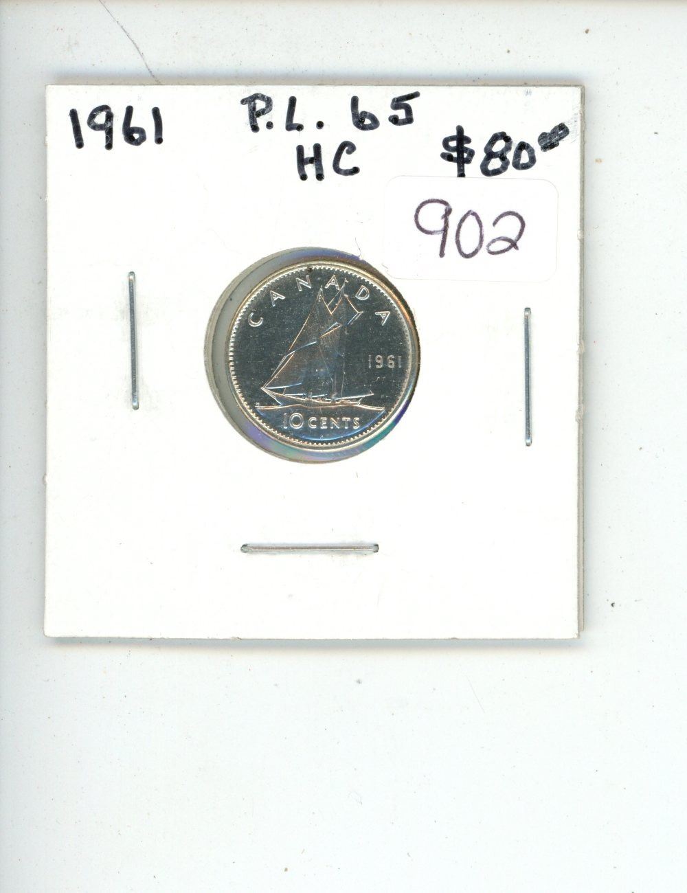 1961 Canadian Silver 10 Cents. Proof Like-65 with Cameo. Bright White. Nice.