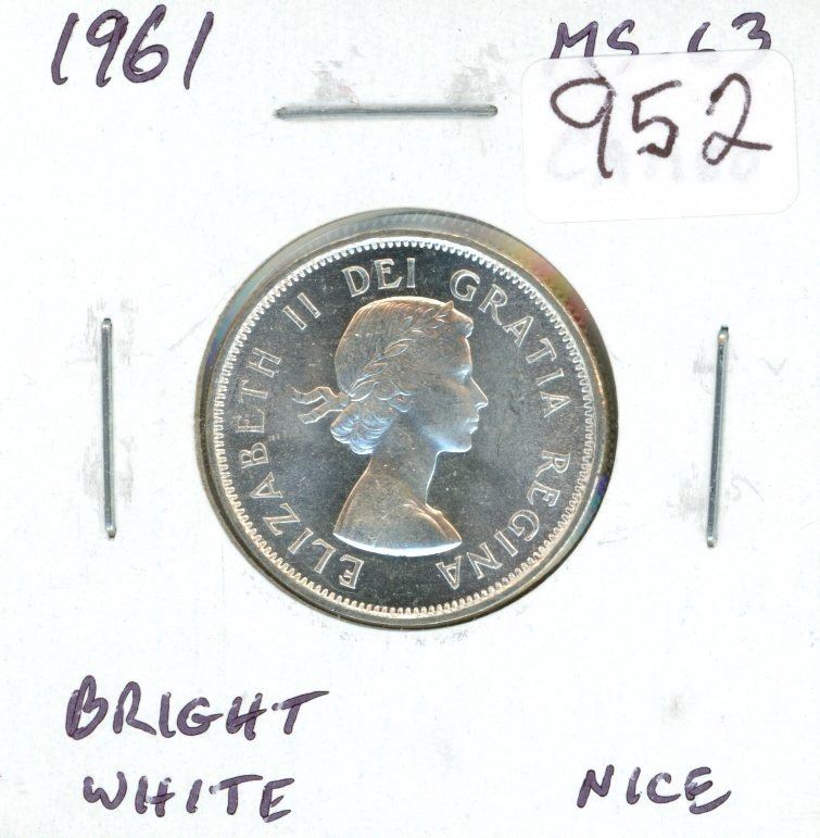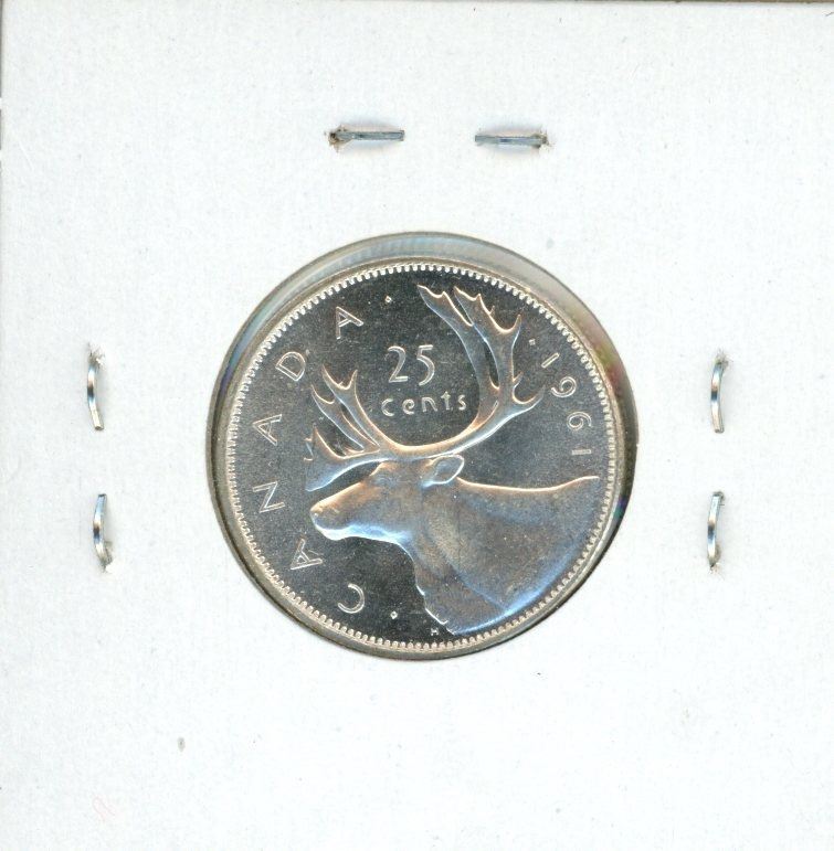 1961 Canadian Silver 25 Cents. MS-63 with Cameo contrast. Bright White. Nice.