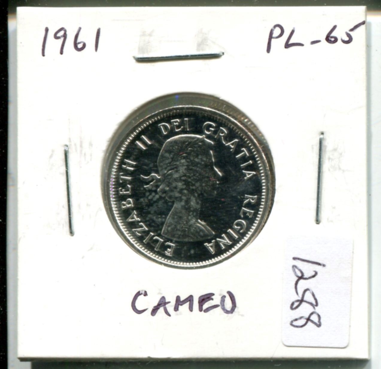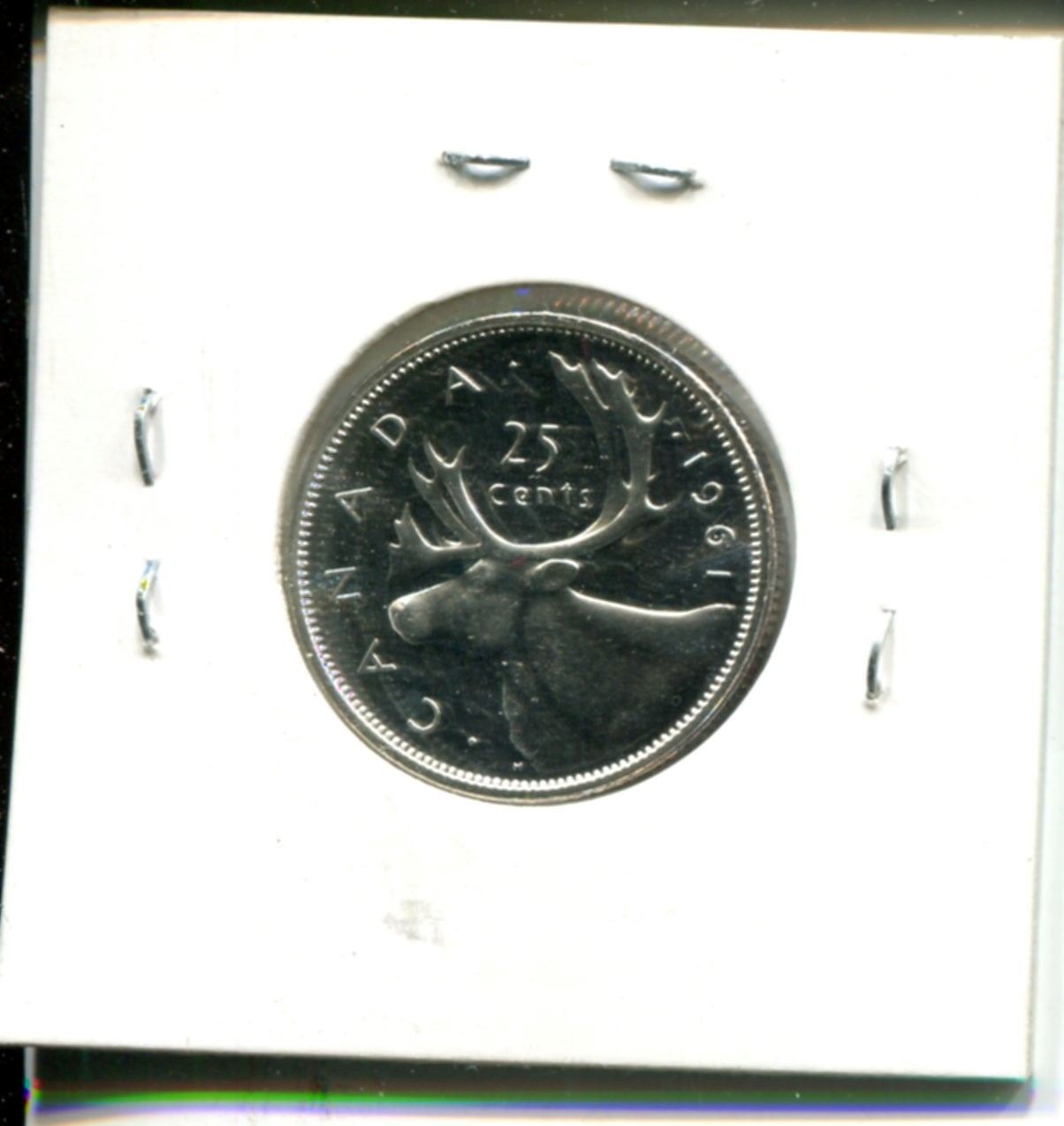 1961 Canadian Silver 25 Cents. Proof Like-65 with Cameo. Nice.
