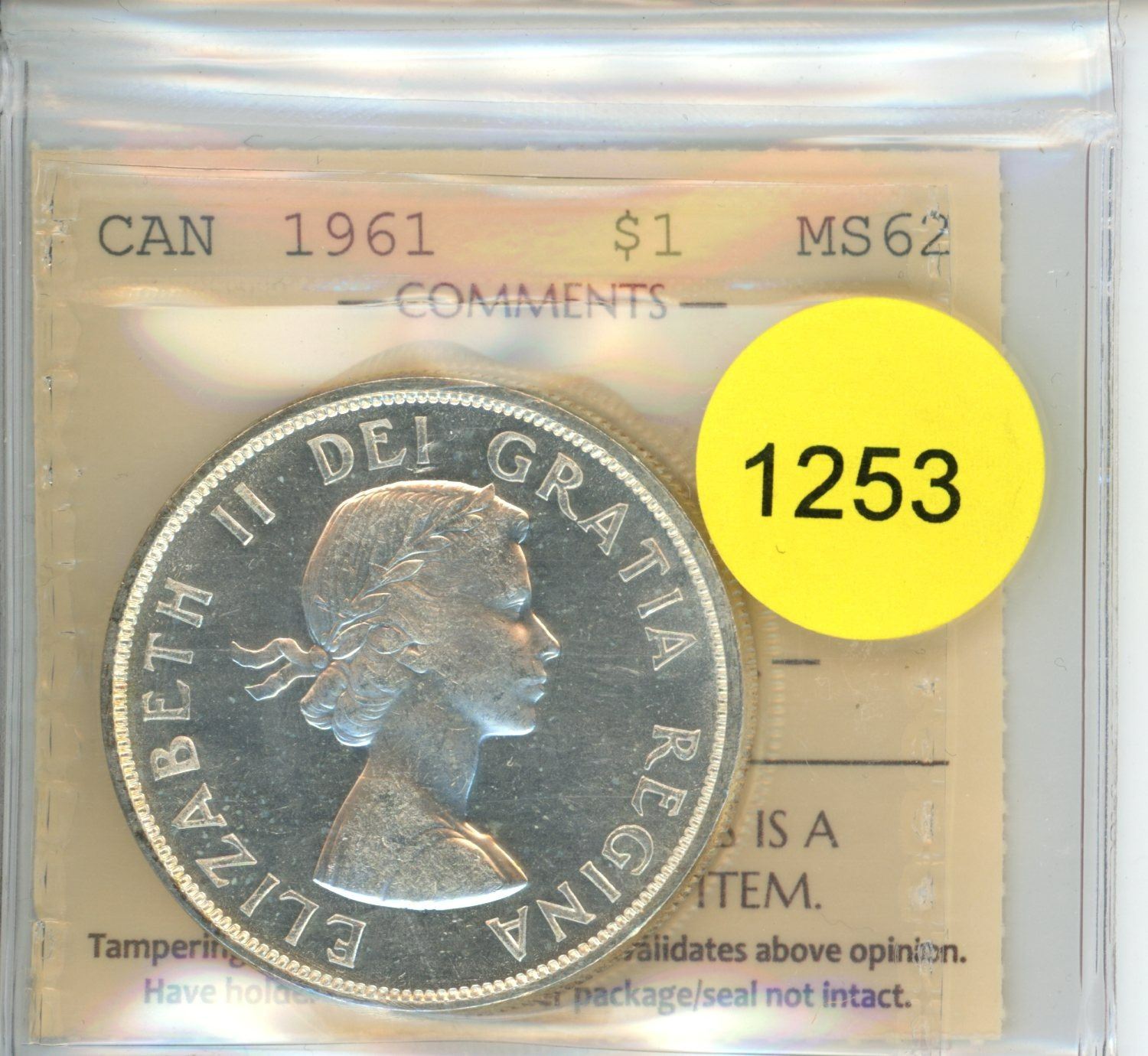 1961 MS62 ICCS Graded Canadian Silver Dollar