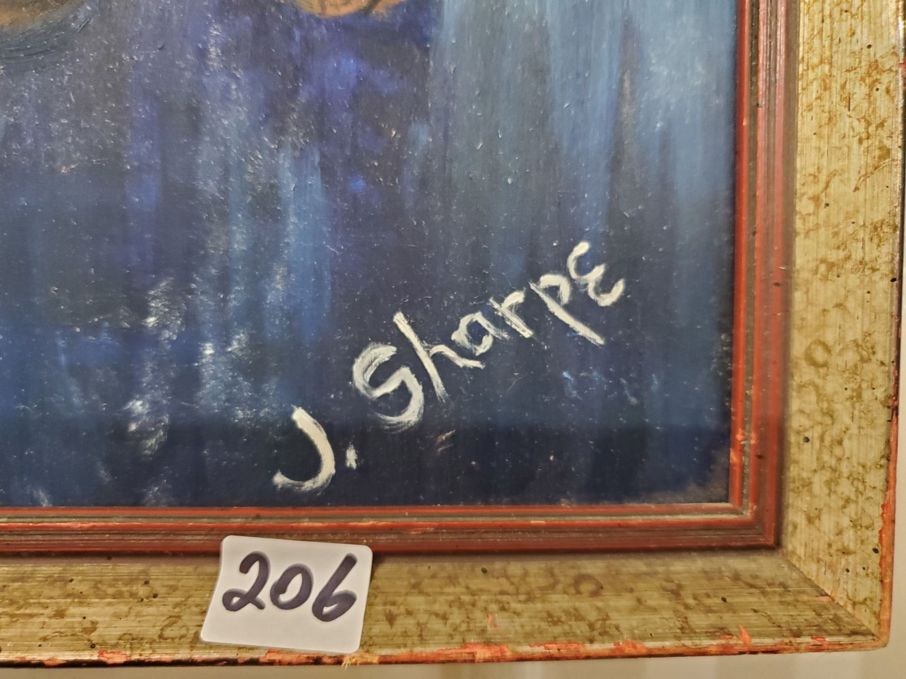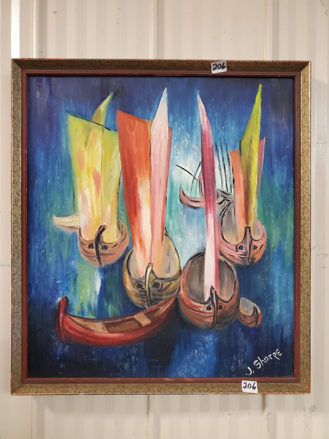 1961 original oil on panel abstract by J. Sharpe 19" X 22"