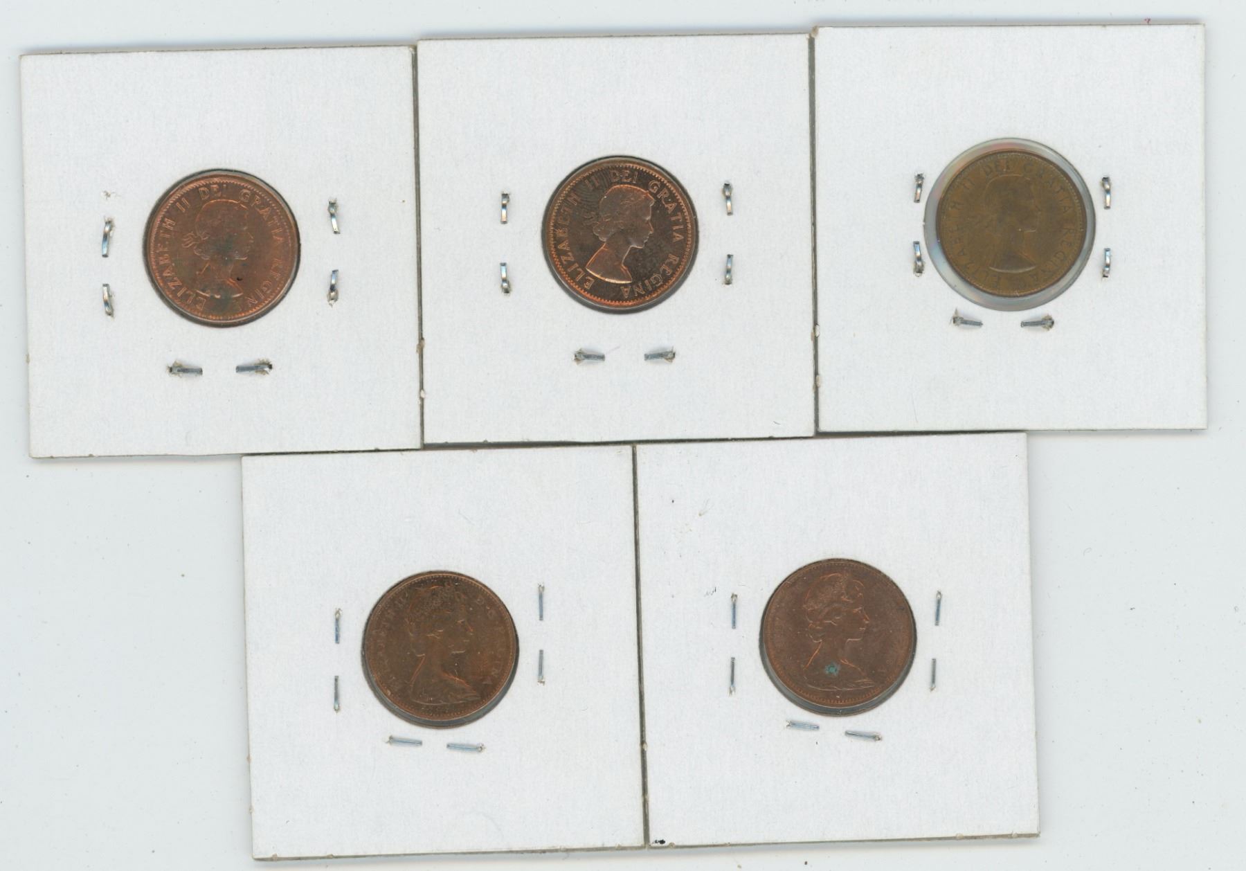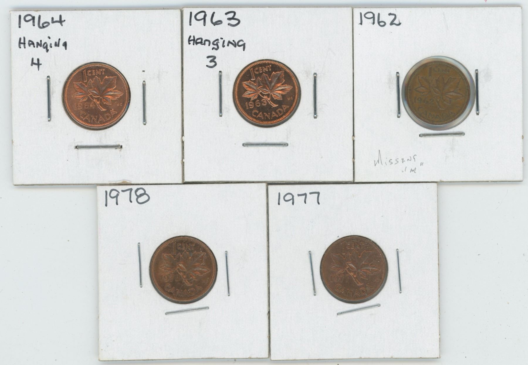 1962 & 63 & 64 & 77 & 78 Canadian 1 Cent Coins