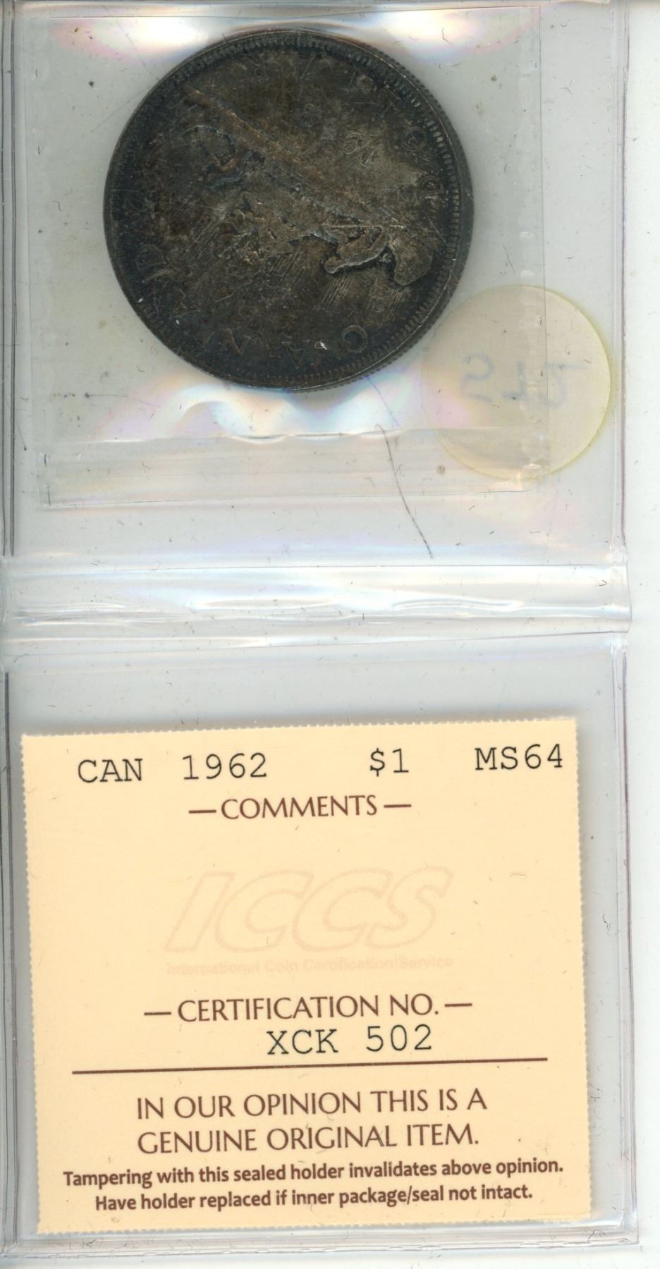 1962 Canada One Dollar - MS-64 - Silver - XCK 502 - ICCS.