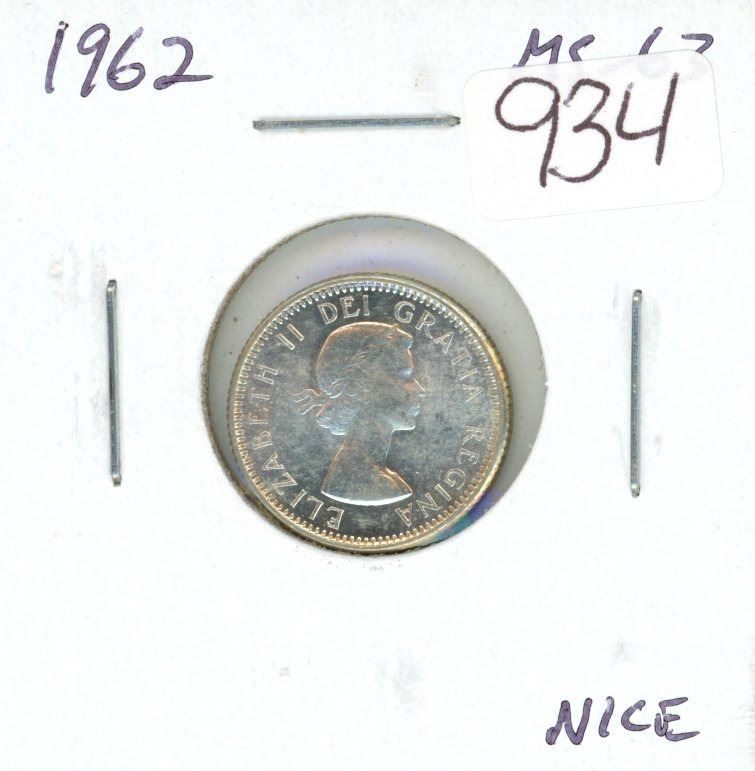 1962 Canadian Silver 10 Cents. MS-63. Nearly Bright White. Nice.