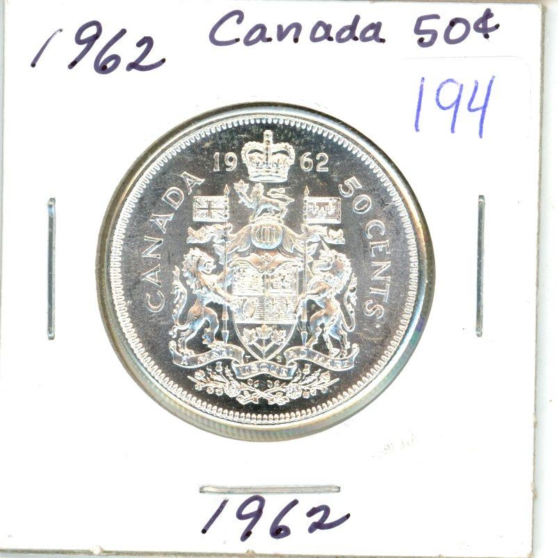 1962 Canadian silver 50 cent coin