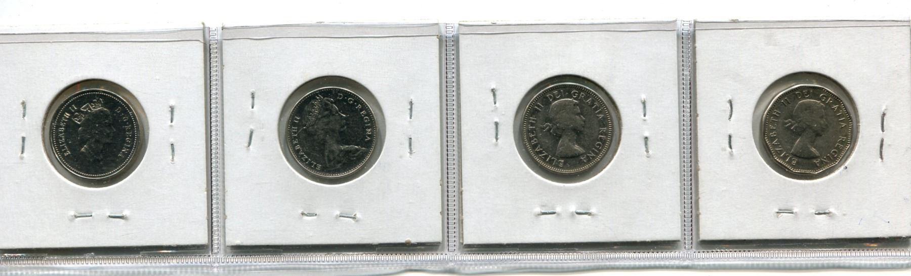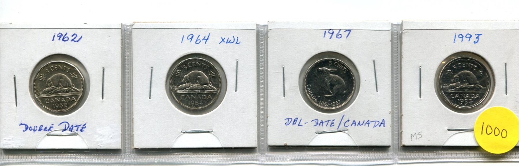 1962 Dbl Date, 1964 XWL, 1967 Dble Date / Canada 1993 - Five Cent Coins