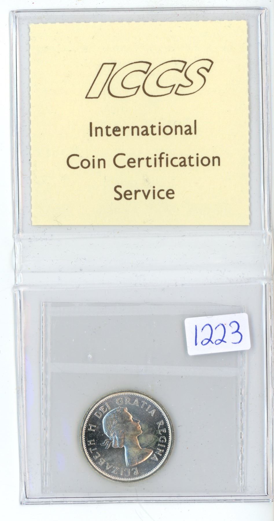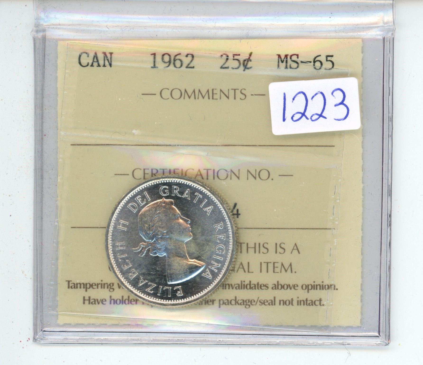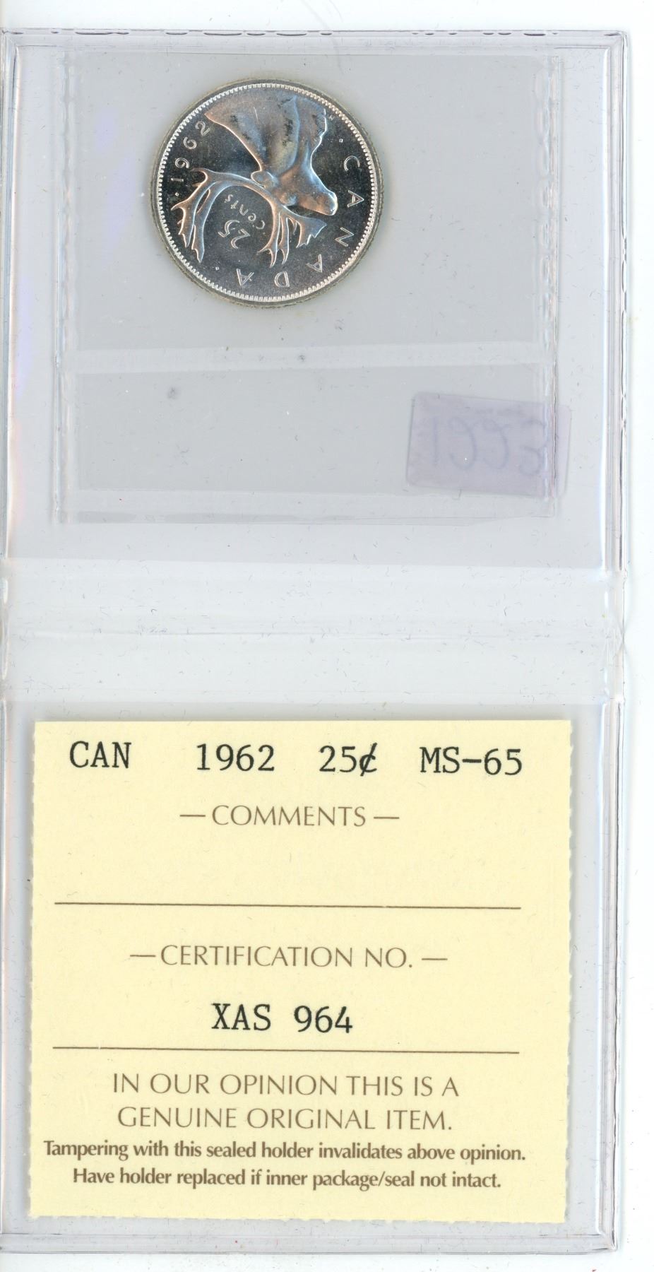 1962 ICCS Graded, Canadian 25 cent silver coin - MS65