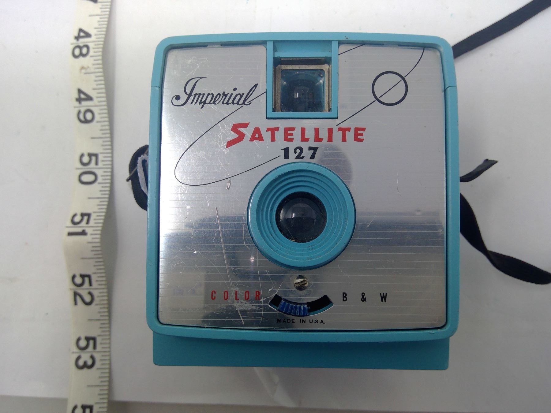1962 Imperial Satellite film camera blue. Camera name inspired by world’s first orbiting satellites.