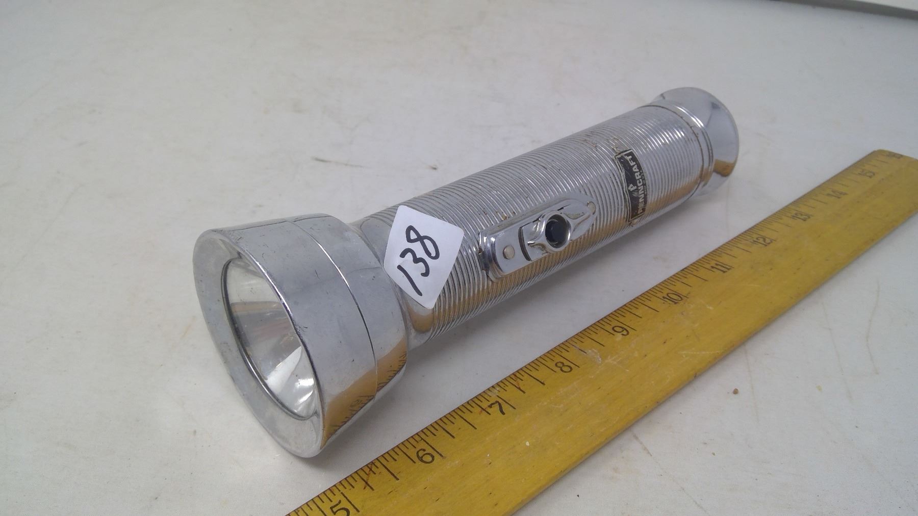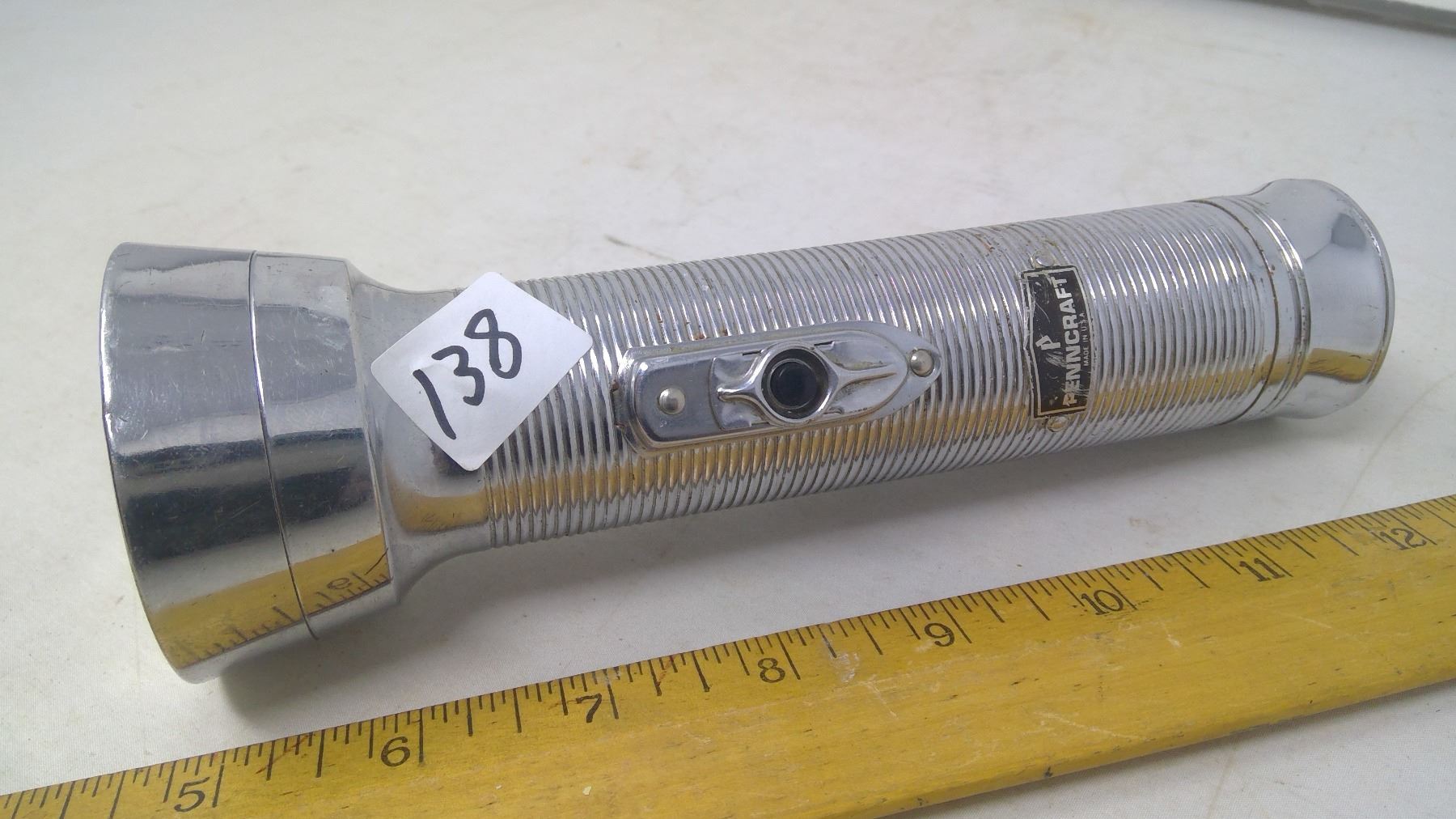 1962 Penncraft U.S.A. All Steel and Glass Flashlight, works. Length 7 1/2"