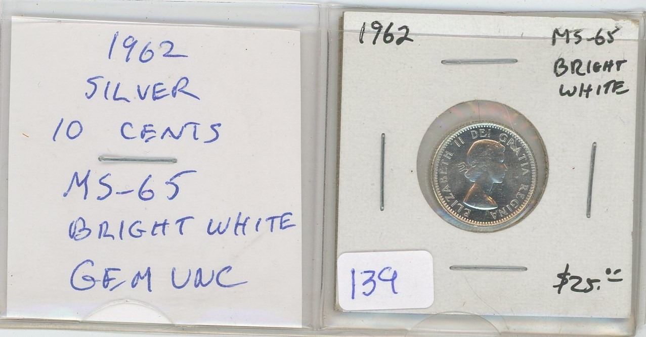 1962 Silver 10 Cents. MS-65. Bright White. Gem Uncirculated. Nice.