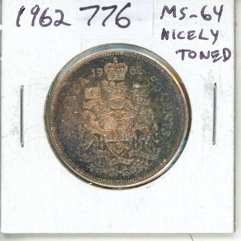 1962 Silver 50 Cents. MS-64. Cameo. Nicely Toned.