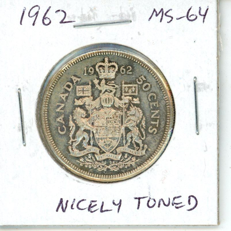 1962 Silver 50 Cents. MS-64. Nicely Toned.
