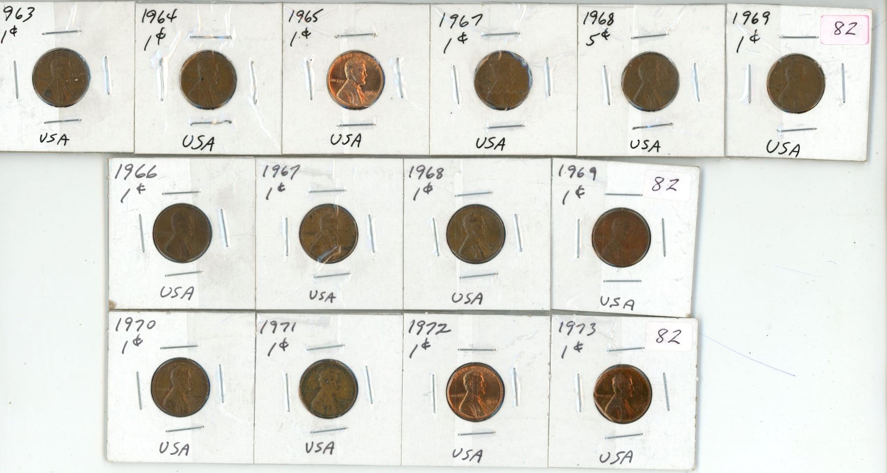 1963-1973 Set of United States of America Pennies