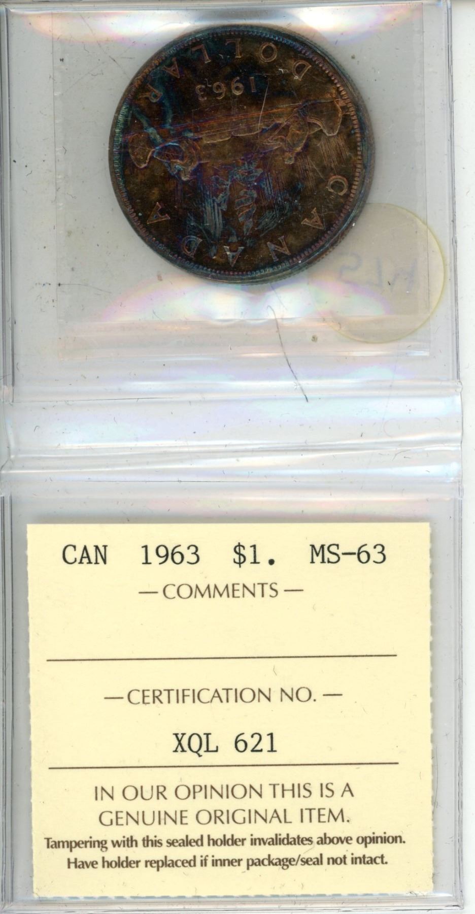1963 Canada One Dollar - MS-63 - Silver - XQL 621 - ICCS.