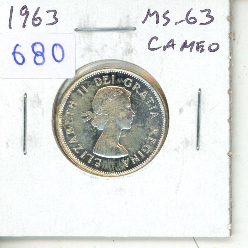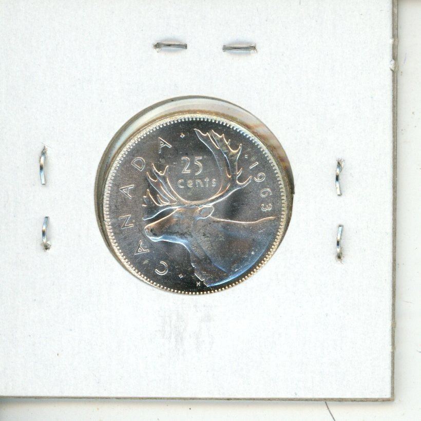 1963 Canadian Silver 25 Cents. MS-63 with Cameo.