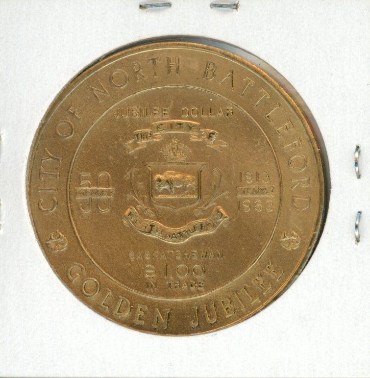 1963 North Battleford Trade Dollar. Celebrates the 50th Anniversary of North Battleford. BU.