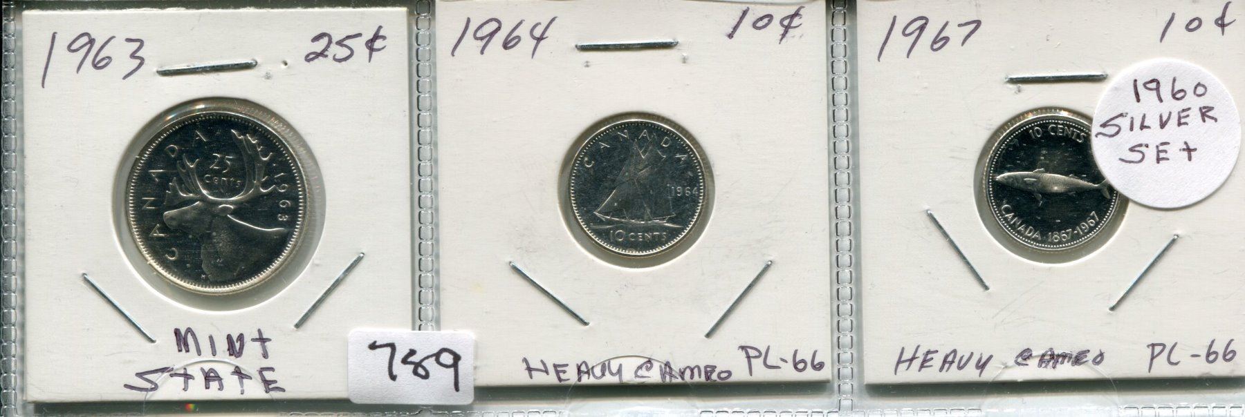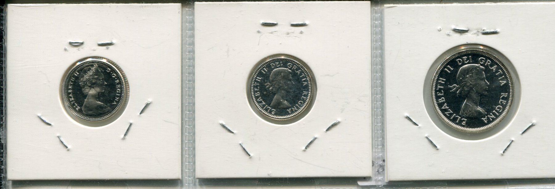 1963 SET OF 3 CNDN COINS (25 CENT PC, 1964 & 1967 10 CENT PCS) *SILVER*